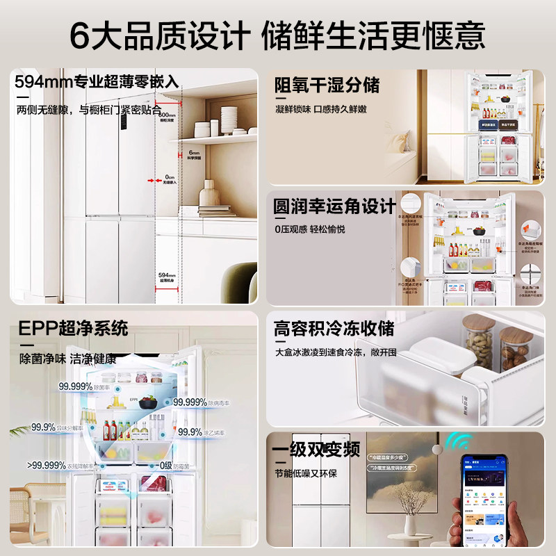 【526十字款】容声516L双净双系统十字双开四门家用无霜嵌入冰箱