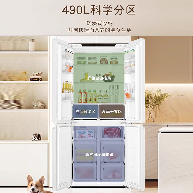 Z【超薄】海尔冰箱490升白色零嵌入式一级能效十字四门Leader516