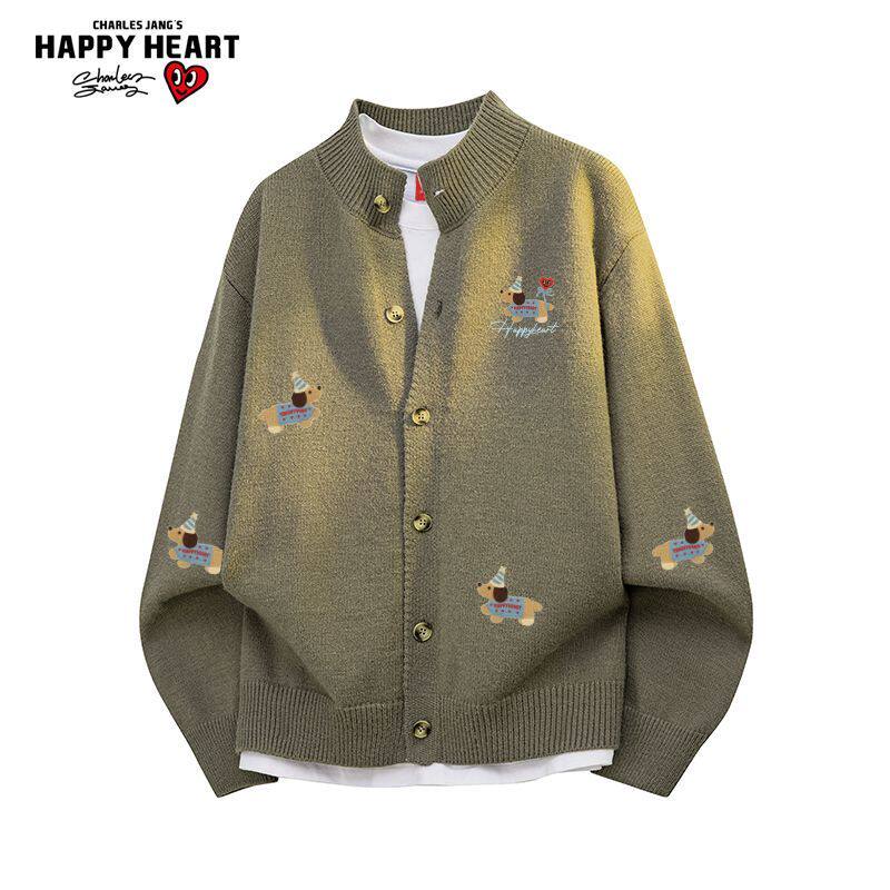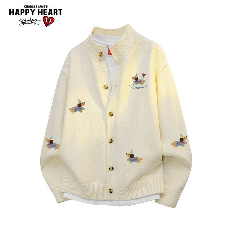查尔斯桃心腊肠狗印花开衫毛衣男女冬季新款休闲情侣针织外套上衣