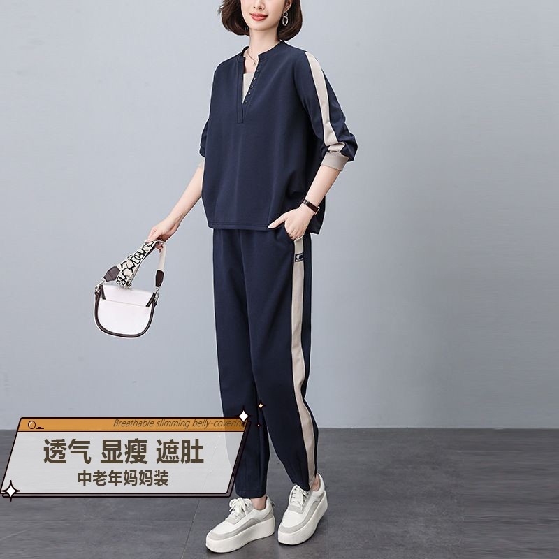 中年妈妈装2025春季新款春秋洋气时尚套装50-60岁休闲卫衣两件套