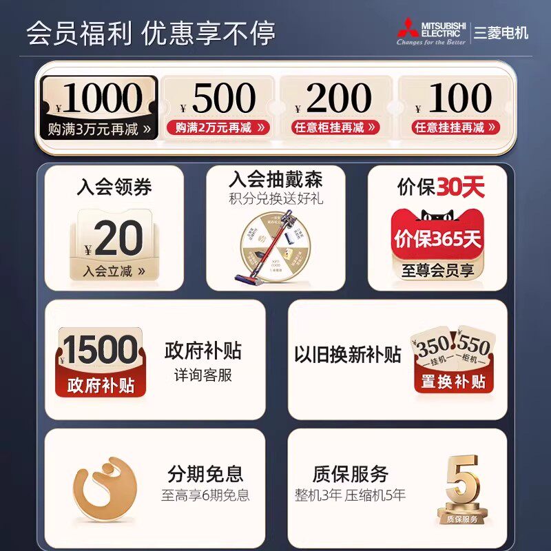 三菱电机MSZ-LZ12VF 1.5匹一级变频家用空调冷暖两用挂机菱之洁