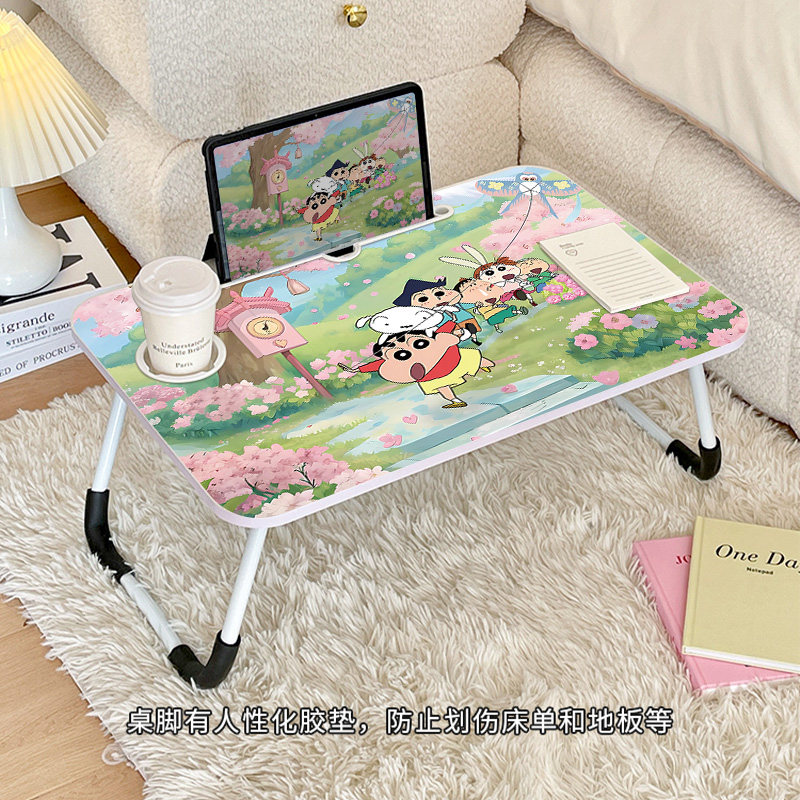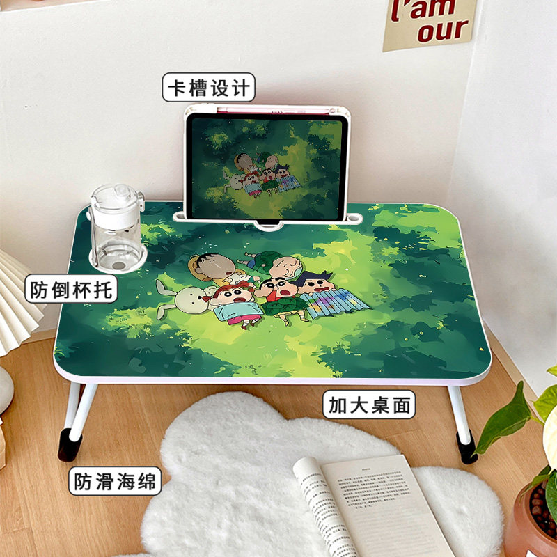 蜡笔小新床上小桌子可折叠便携卡通可爱折叠桌学生写字桌宿舍上铺懒人餐桌小桌板野餐桌化妆桌电脑桌女课桌