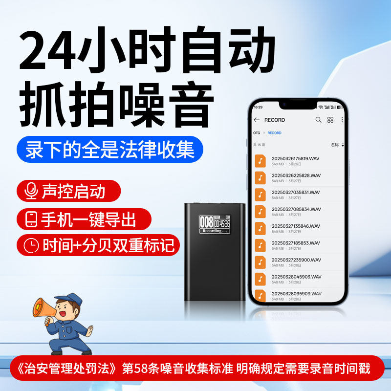 楼上噪音收集器带时间智能声控无线高清定时收音房间长续航录音笔