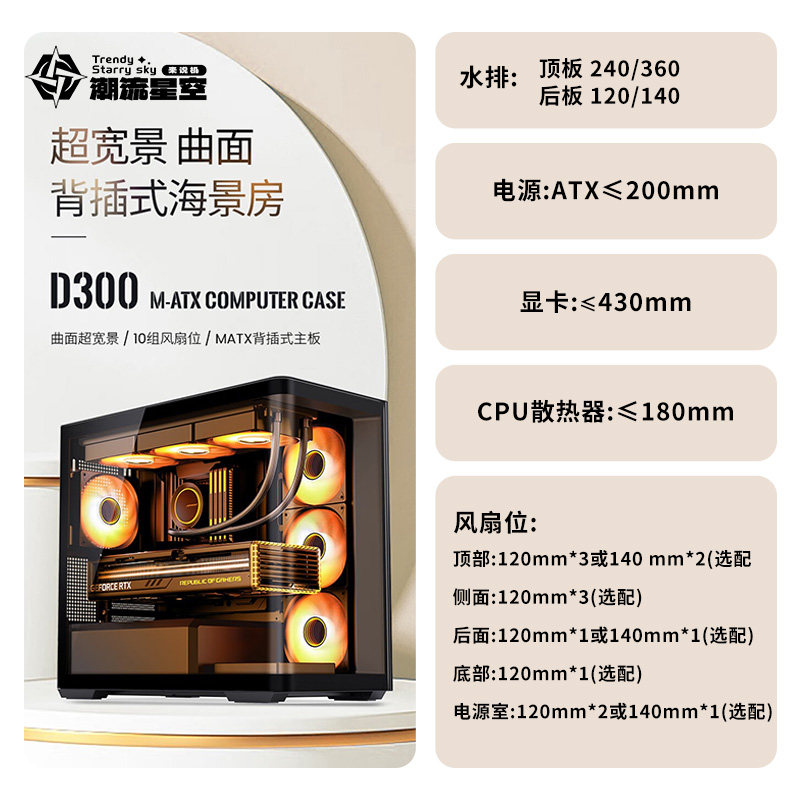乔思伯MATX机箱D300曲面无立柱侧透海景房鱼缸机箱游戏水冷机箱