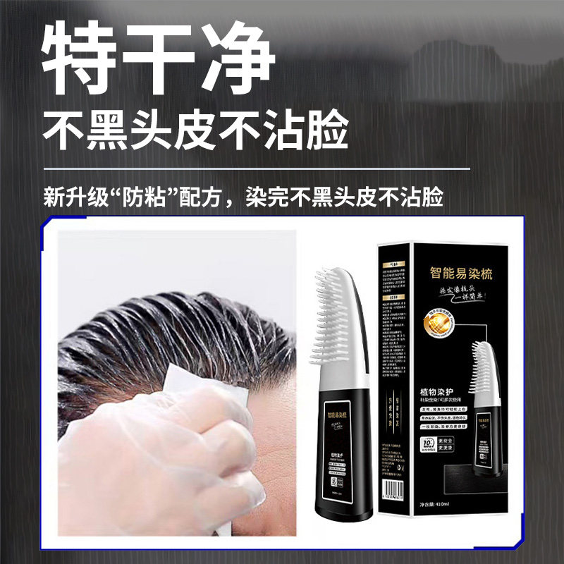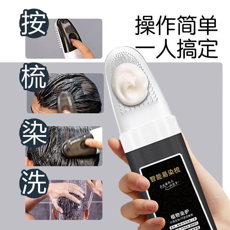 一梳子自然黑色男士专用速染染发剂纯植物正品不沾头皮遮盖白发膏