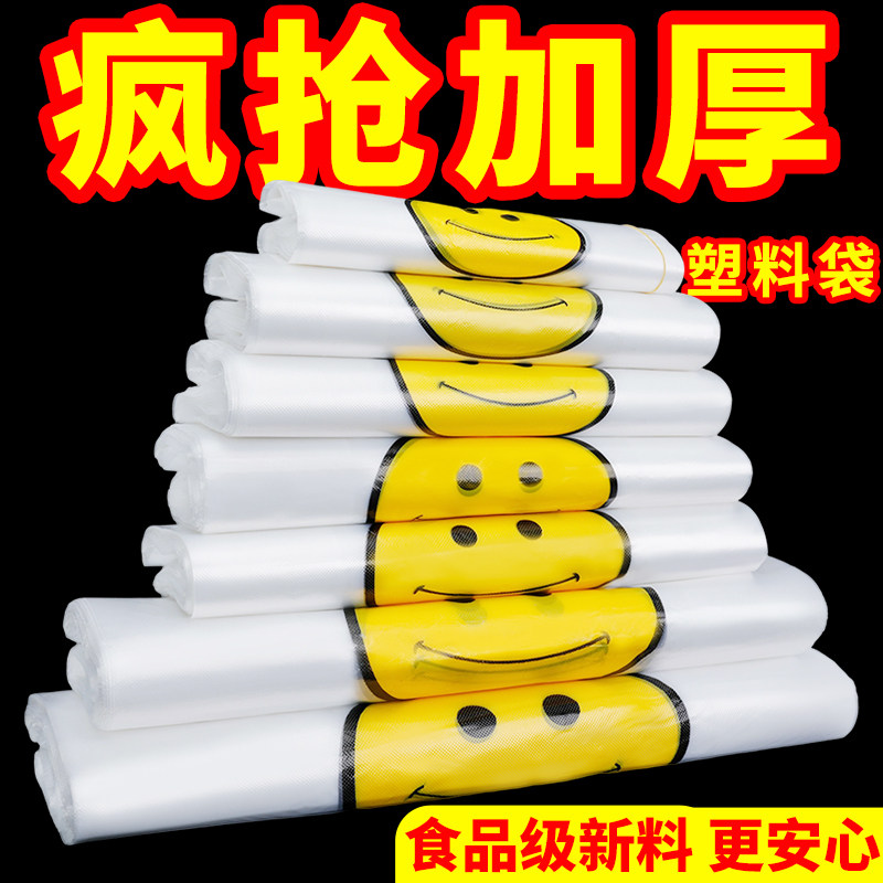笑脸加厚透明塑料袋外卖垃圾袋商用打包袋购物袋方便手提袋子食品