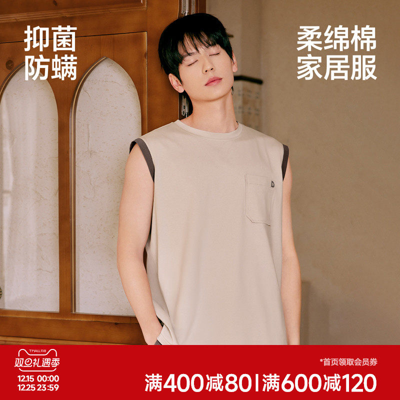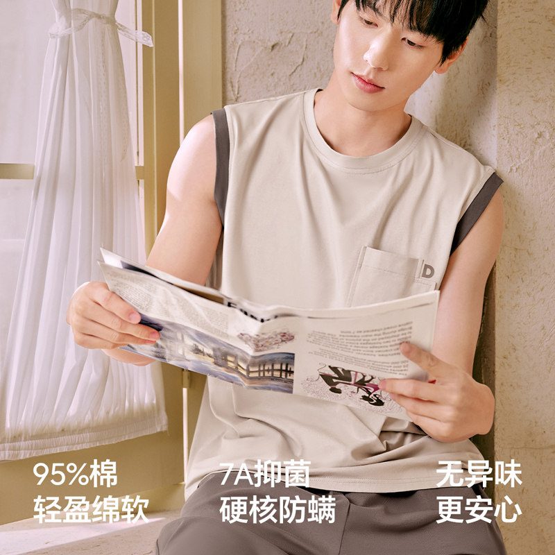 森马男士家居服套装2025新款男生背心睡衣棉质可外穿7A级抗菌防螨