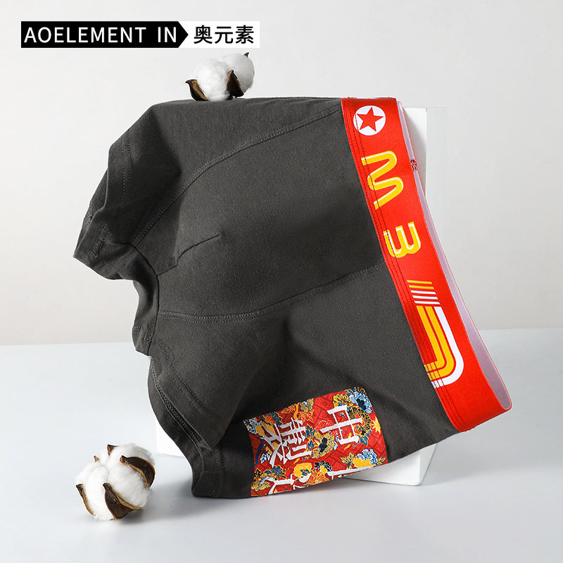 男士内裤男纯棉平角裤青年潮流个性四角裤头男生宽松运动短裤衩潮