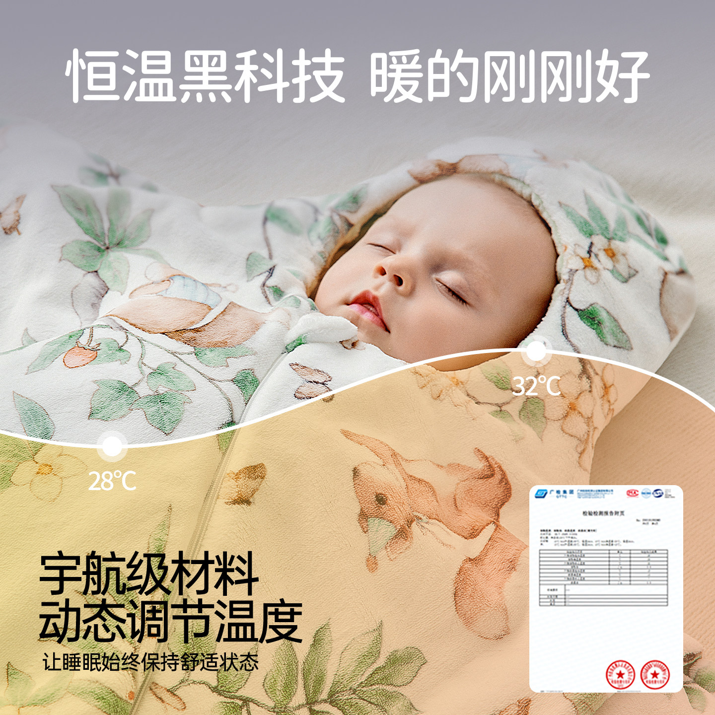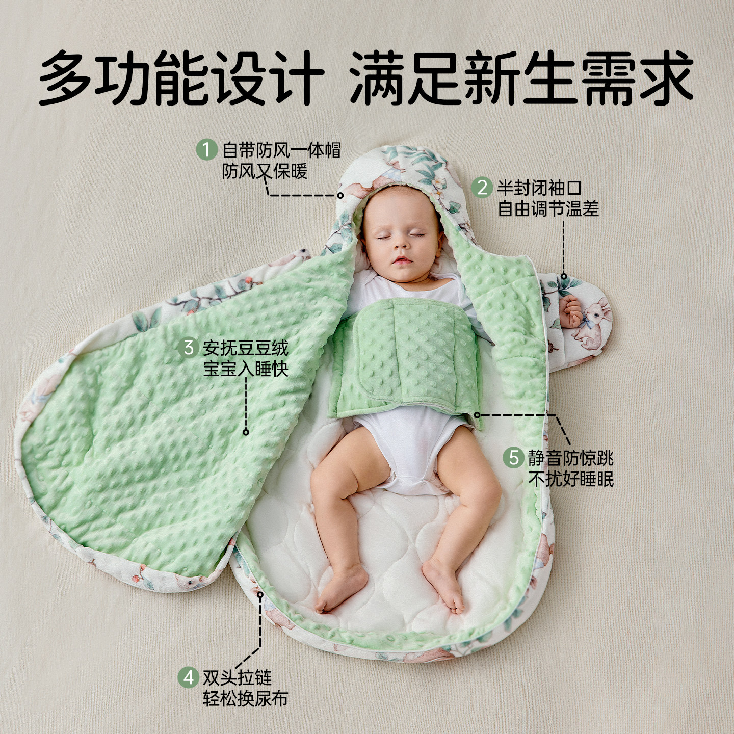 欧孕婴儿秋冬抱被恒温蚕丝防惊跳睡袋新生儿防踢被护肚豆豆绒安抚