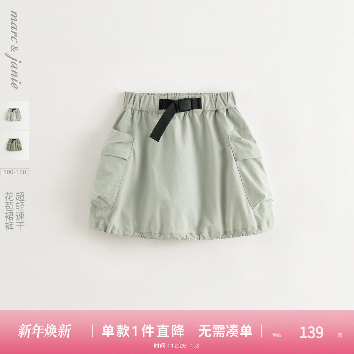 【速干】马克珍妮女童城市户外花苞裙裤 儿童短裙春夏新款250261