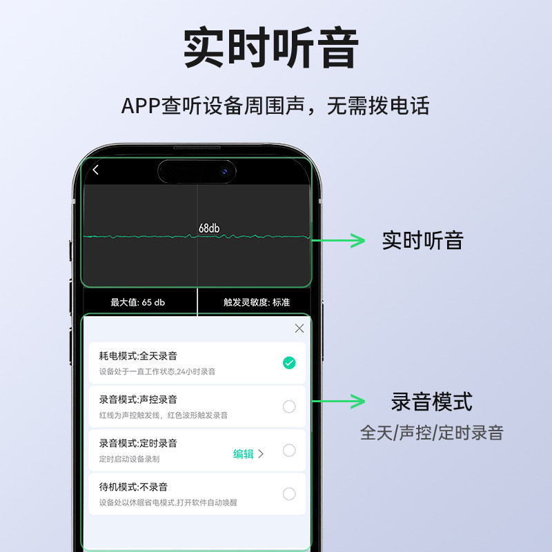 360°原声录音监控听器+APP控制+定时录音