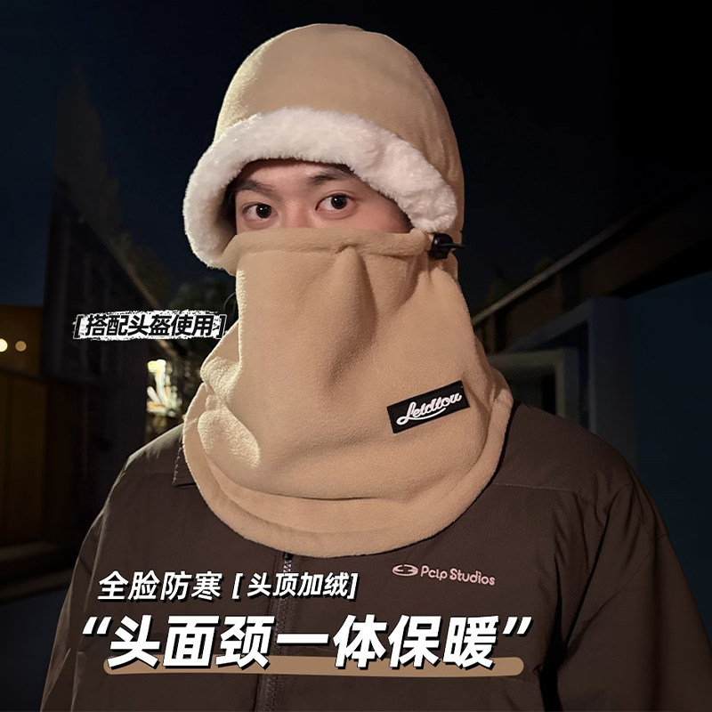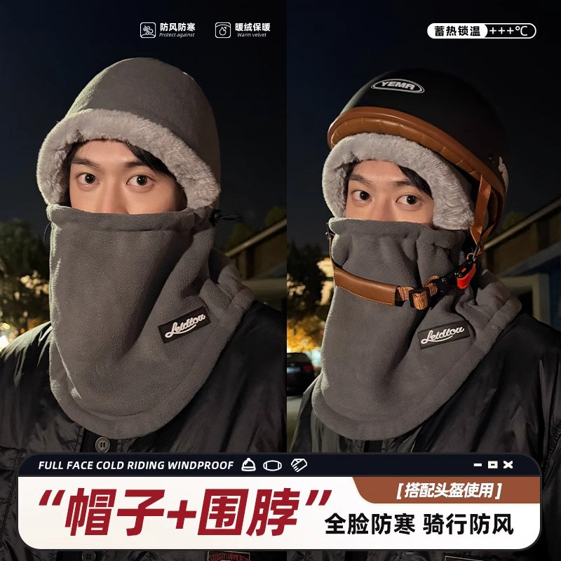 电动车头盔内胆保暖帽子男女冬季护耳骑行防风寒头套面罩围巾一体