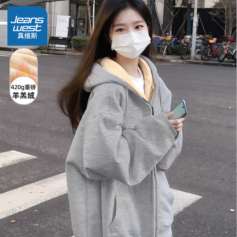 LBD真维斯加绒外套女秋冬2025新款加厚羊羔绒上衣小个子开衫卫衣