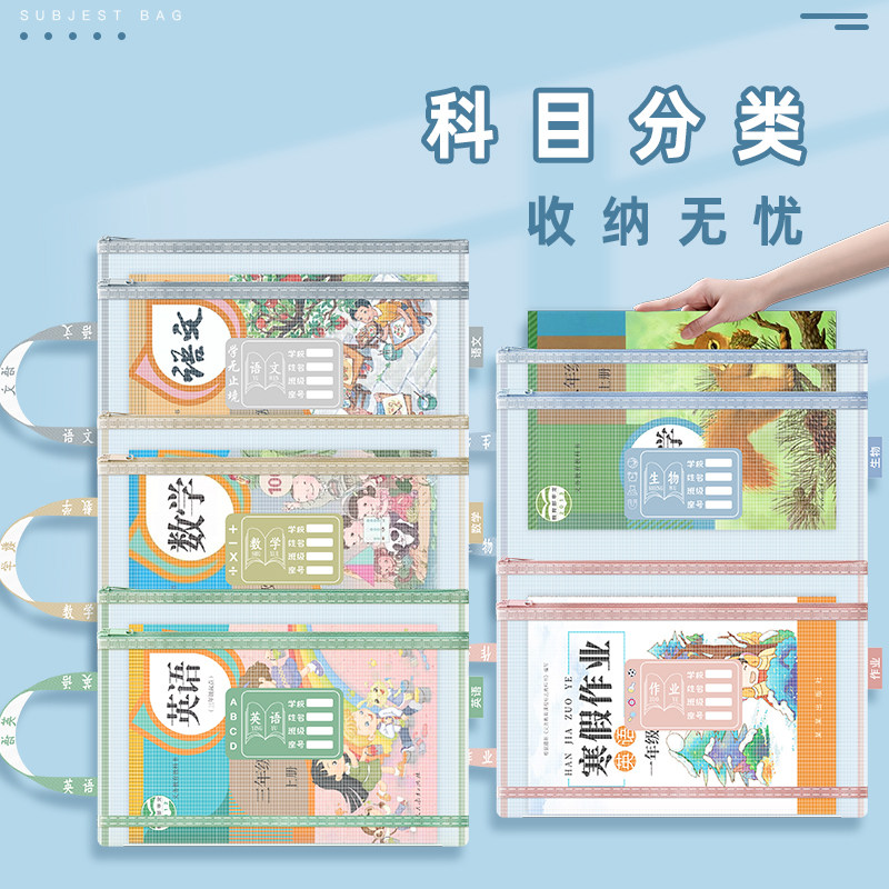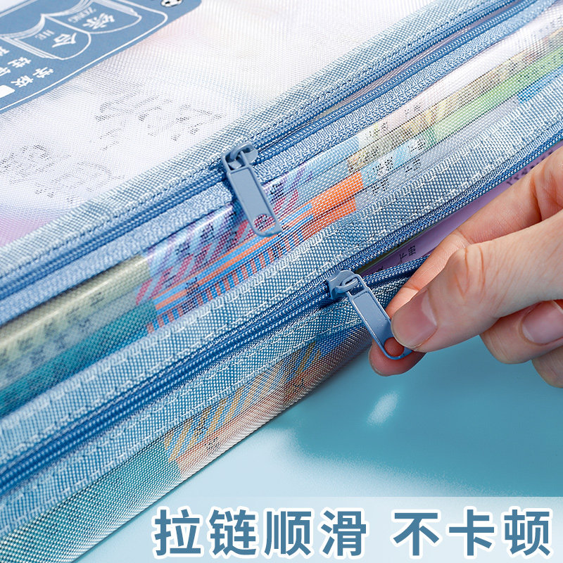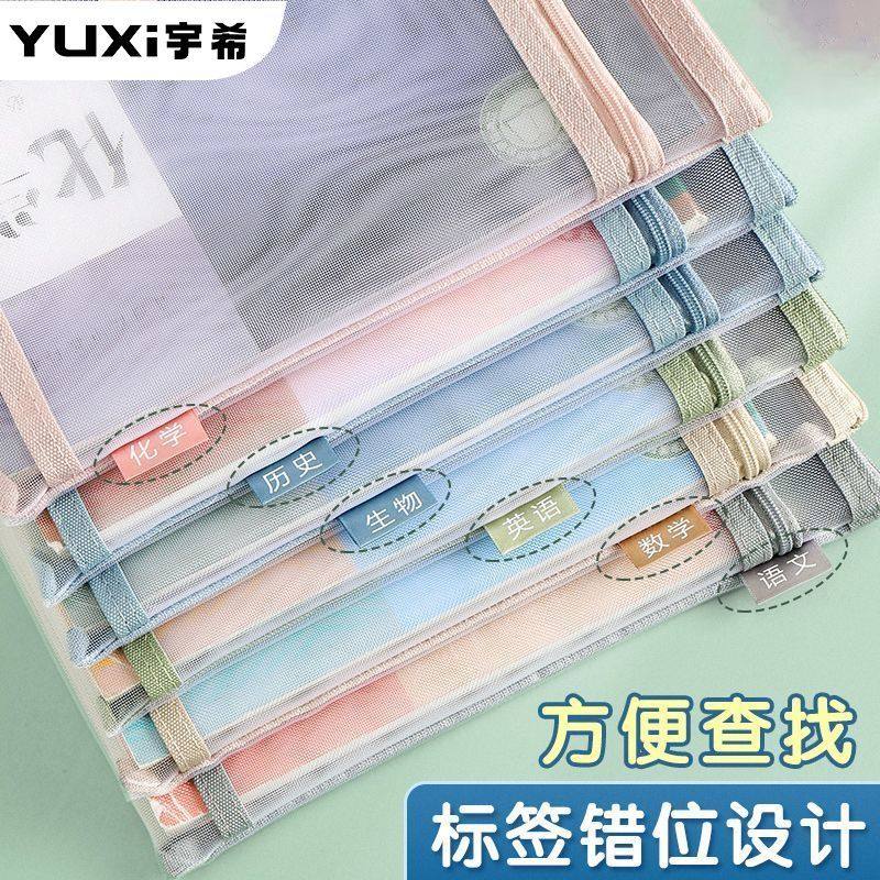 宇希学生科目分类文件袋A4双层大容量透明网纱手提作业试卷收纳袋语数英高中单层网格课本整理