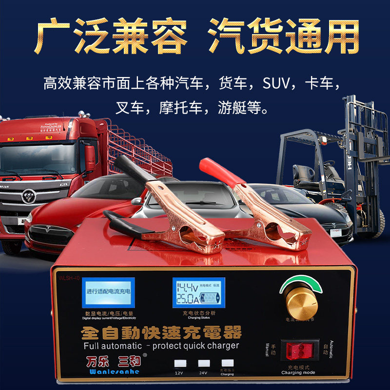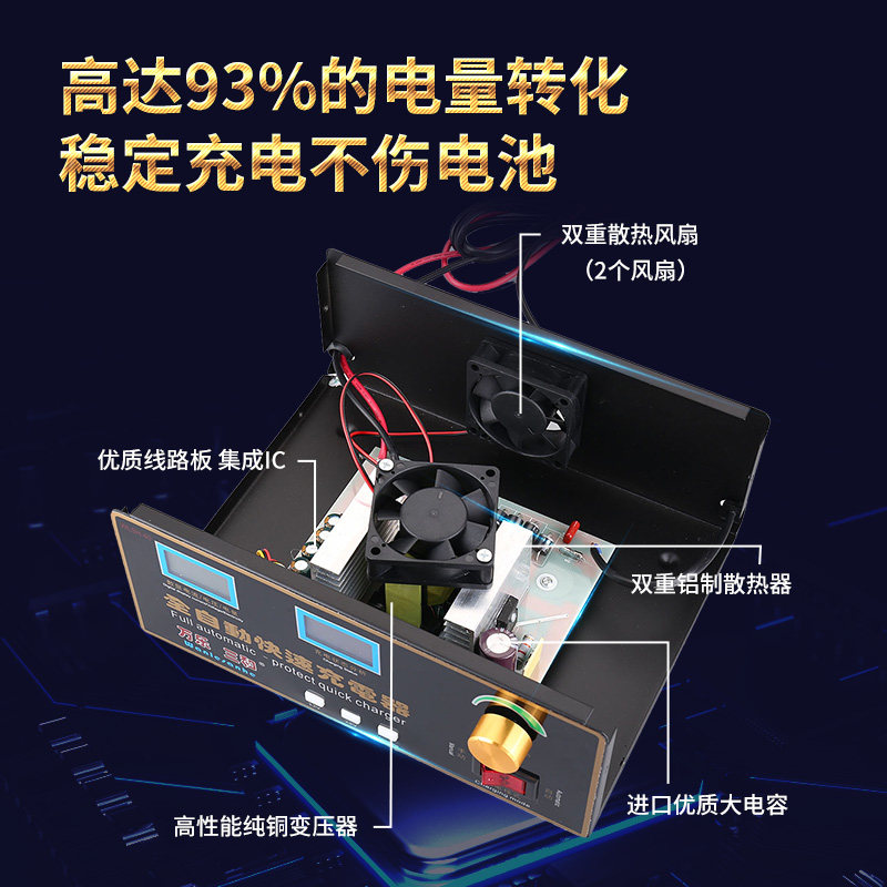 600W大功率货车汽车电瓶充电器12V24V智能脉冲电池充电机纯铜线圈