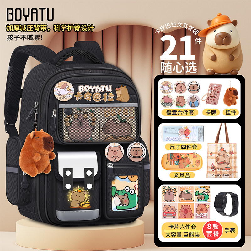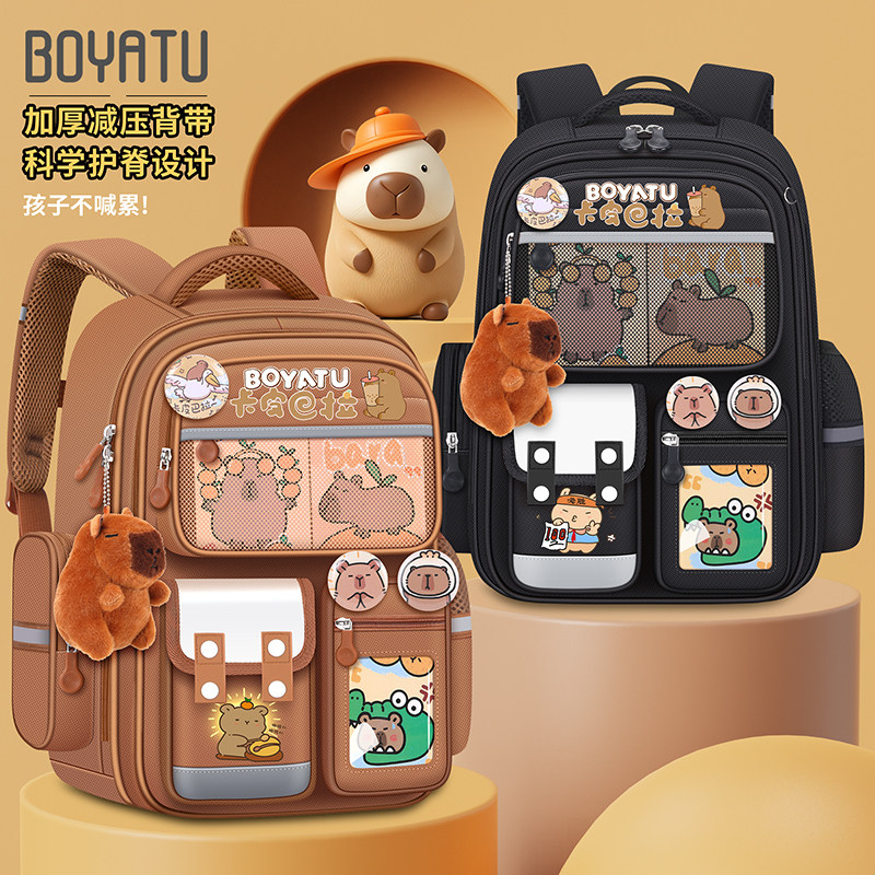 卡皮巴拉小学生儿童可爱书包超萌减负背包男女孩大容量护脊双肩包