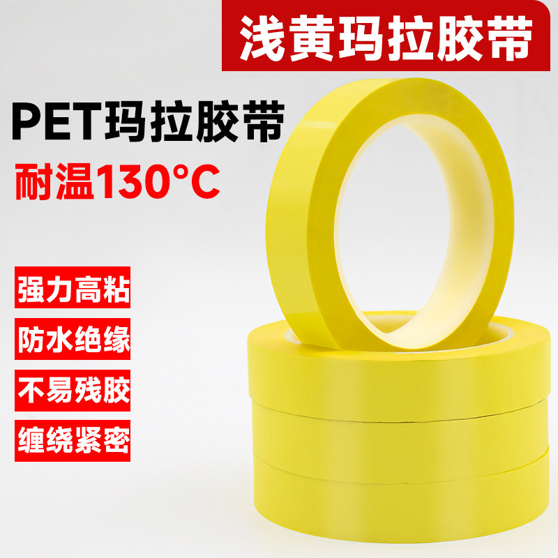 浅黄色小规格PET玛拉胶变压器铁芯麦拉胶带电池绝缘马拉胶带5s定位胶宽任意耐高温桌面定位胶带火牛胶带66米