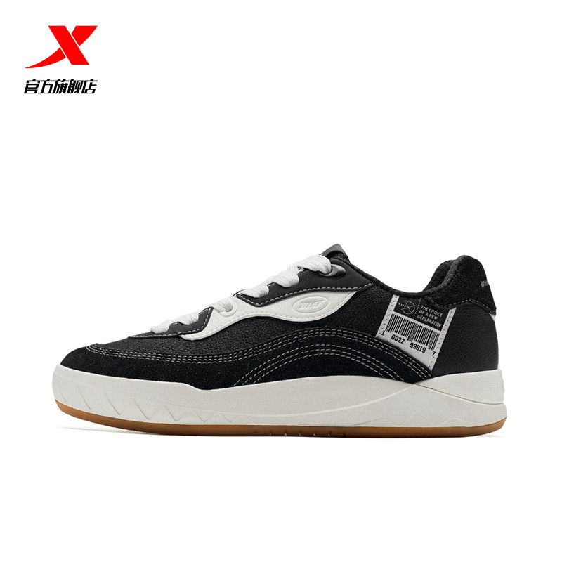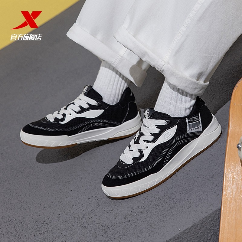 特步启浪板鞋男鞋冬季新款熊猫鞋休闲鞋运动鞋男帆布鞋滑板平底鞋