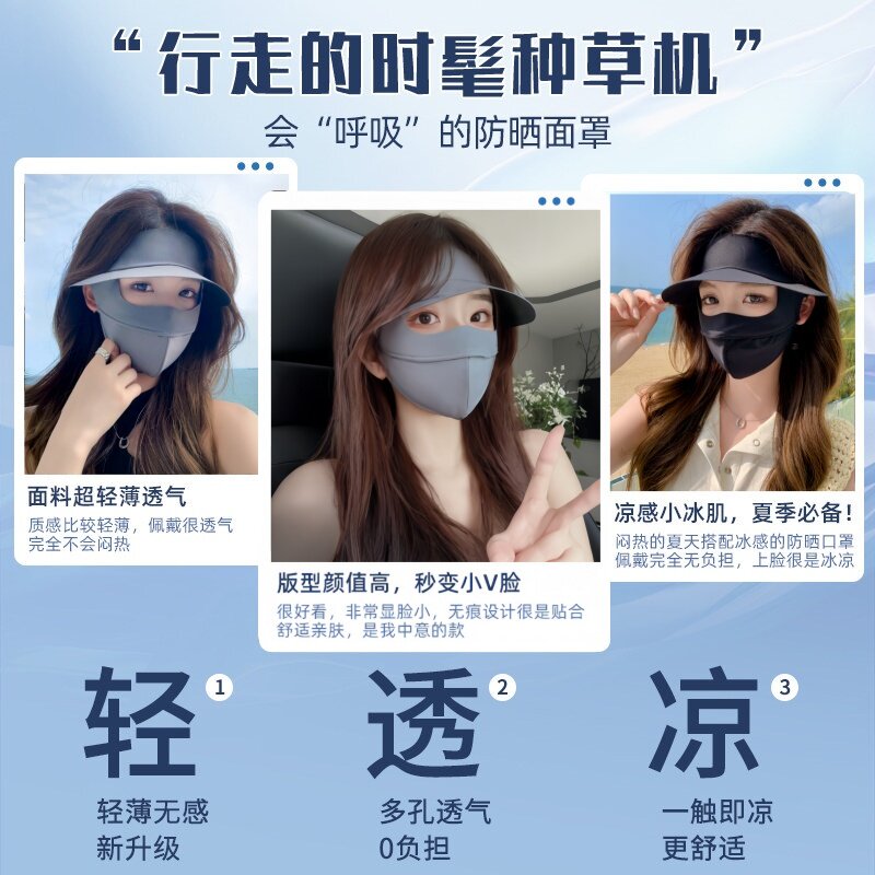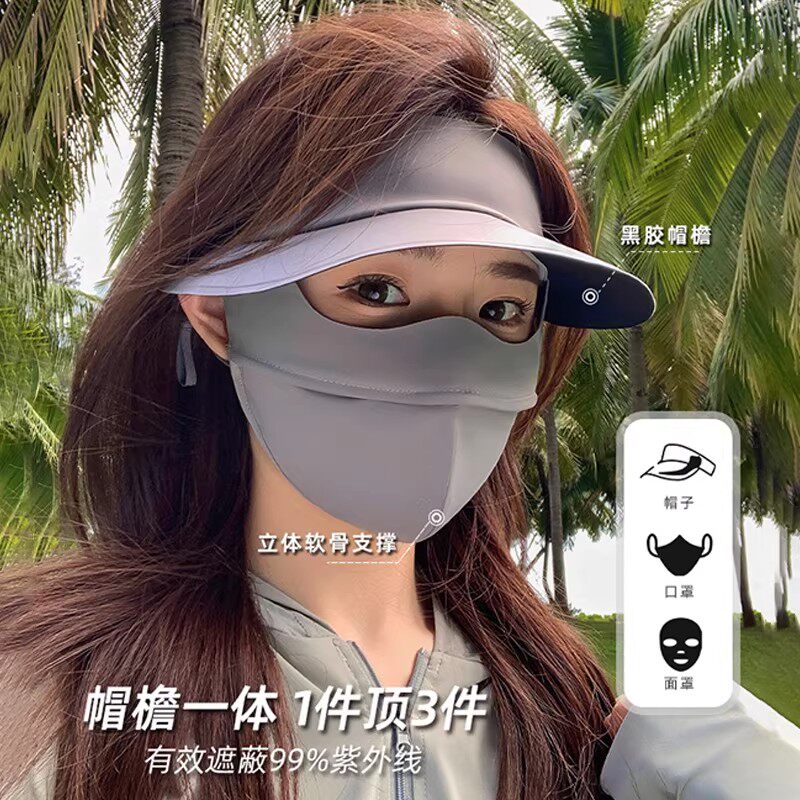 防晒面罩女夏季遮阳防紫外线2026新款全脸帽子口罩一体冰丝脸基尼
