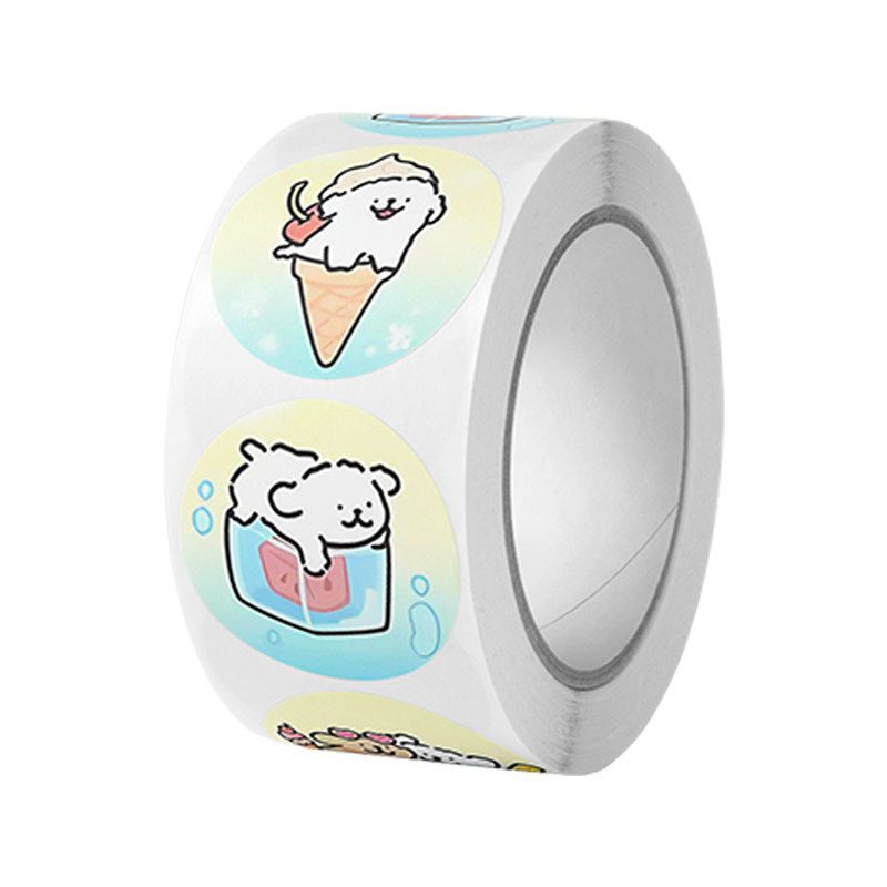卡通线条小狗卷卷贴小学老师奖励贴学生手账装饰贴外卖包装封口贴