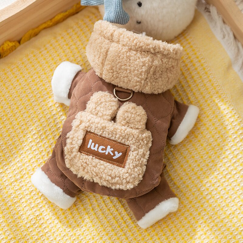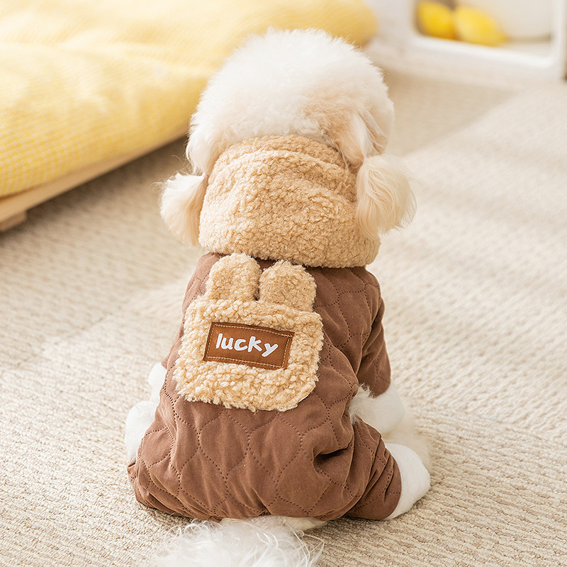 狗狗衣服四脚棉服秋季冬季加厚保暖宠物服装泰迪博美幼犬棕色紫色