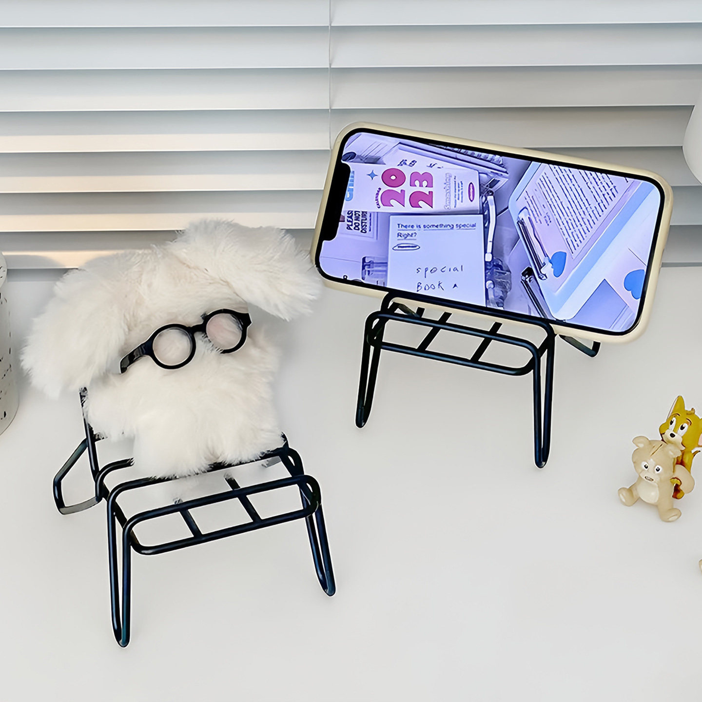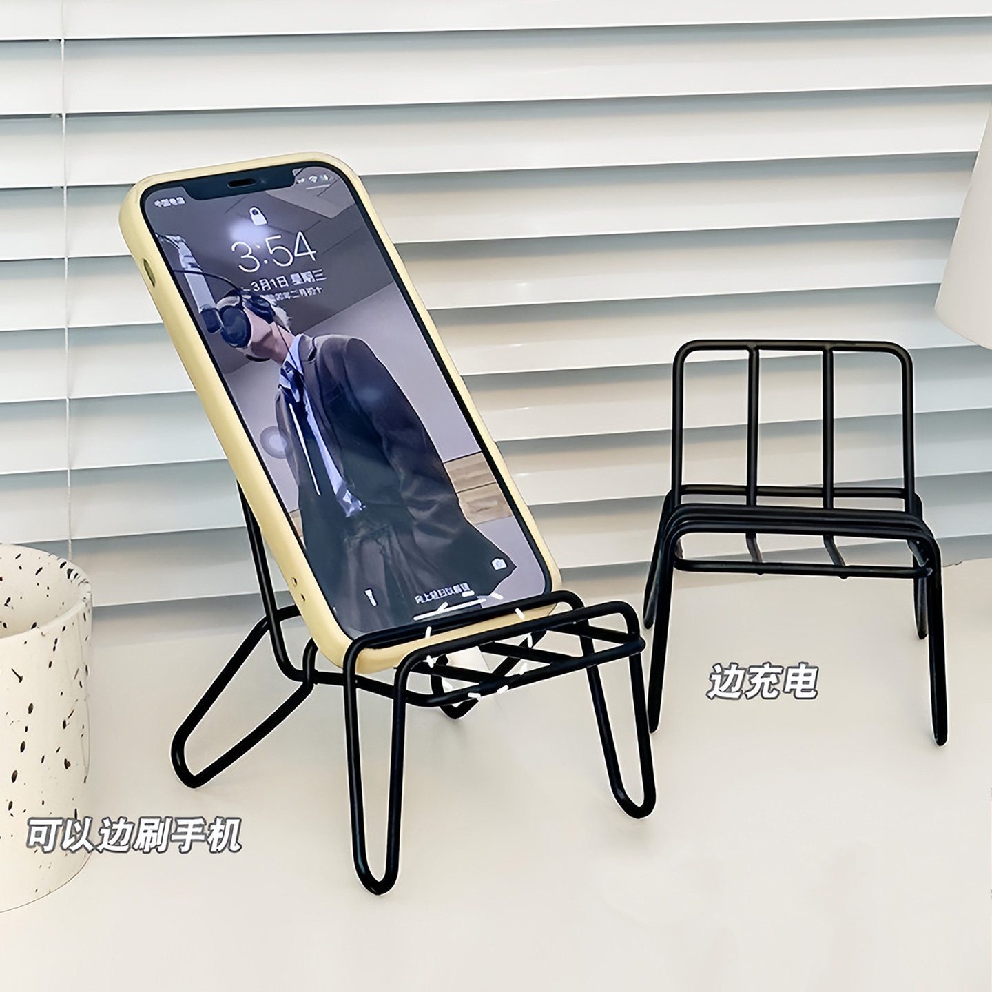 小椅子手机支架可爱创意桌面摆件金属铁艺懒人支架便携手机放置架