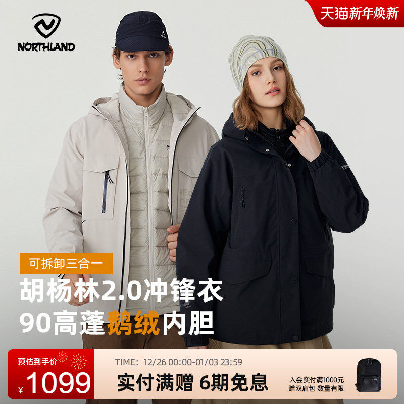 【胡杨林2.0|鹅绒版】诺诗兰三合一冲锋衣秋冬男女保暖徒步登山服