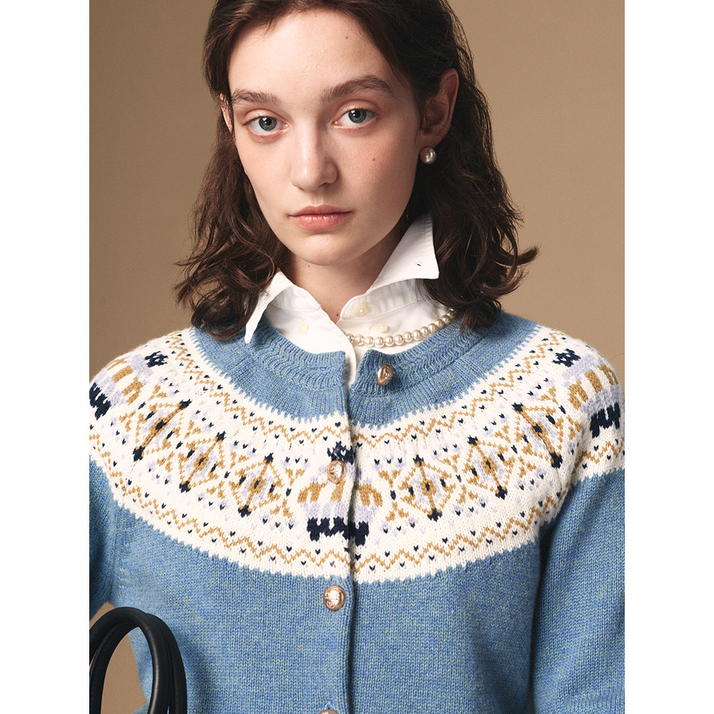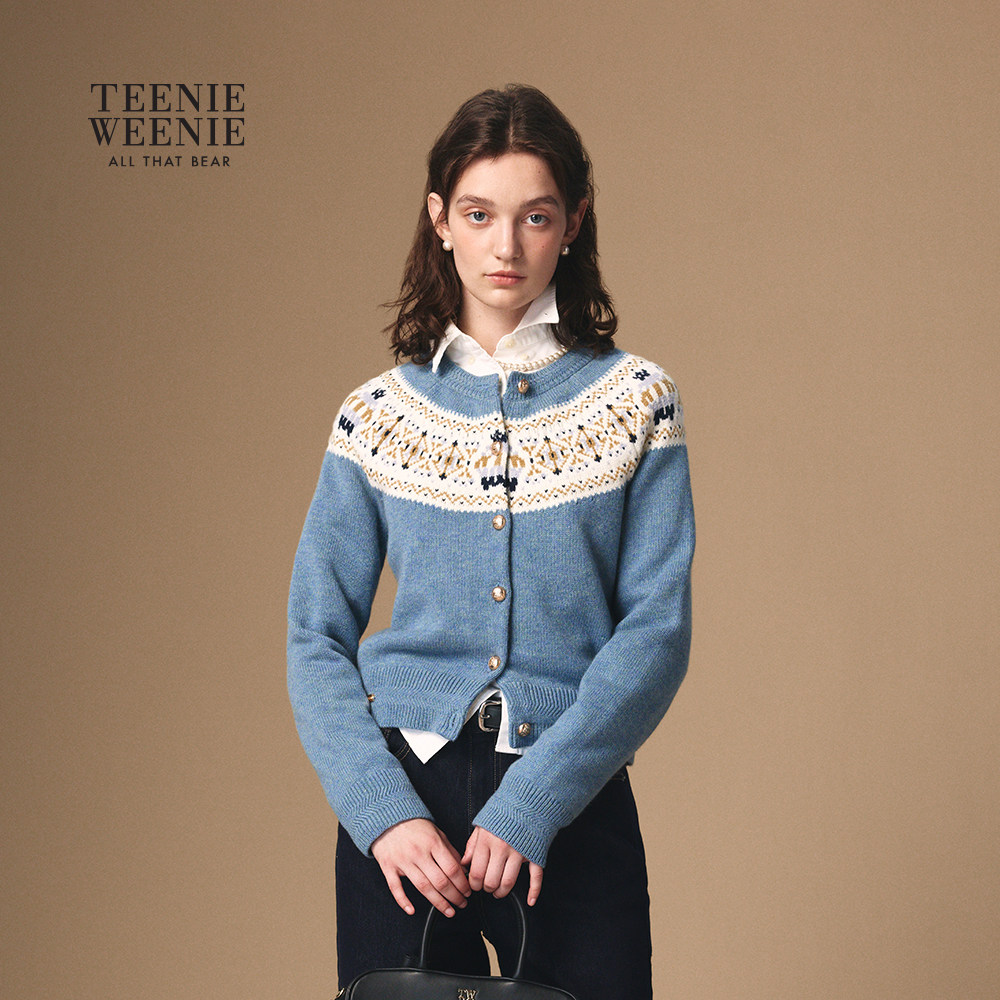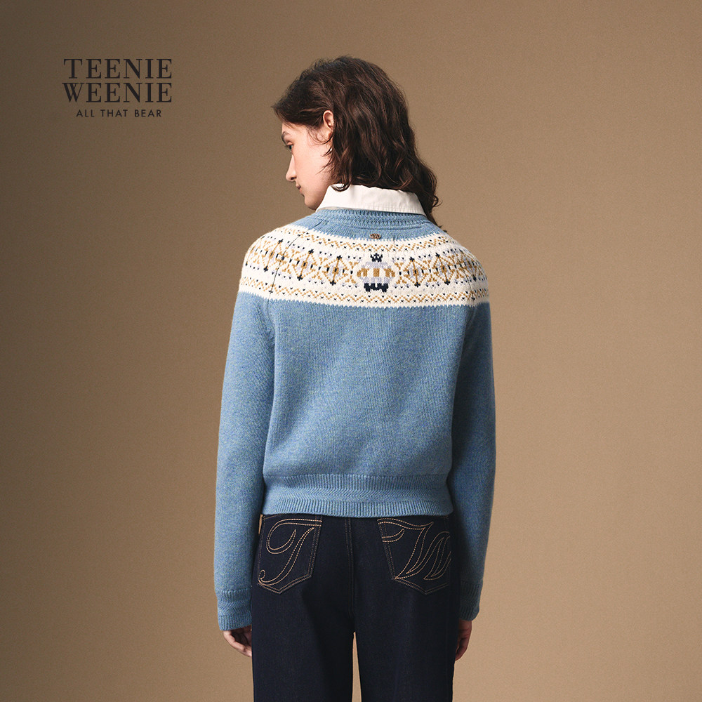 TeenieWeenie小熊女装毛衣2025年冬季新款复古费尔岛提花针织开衫