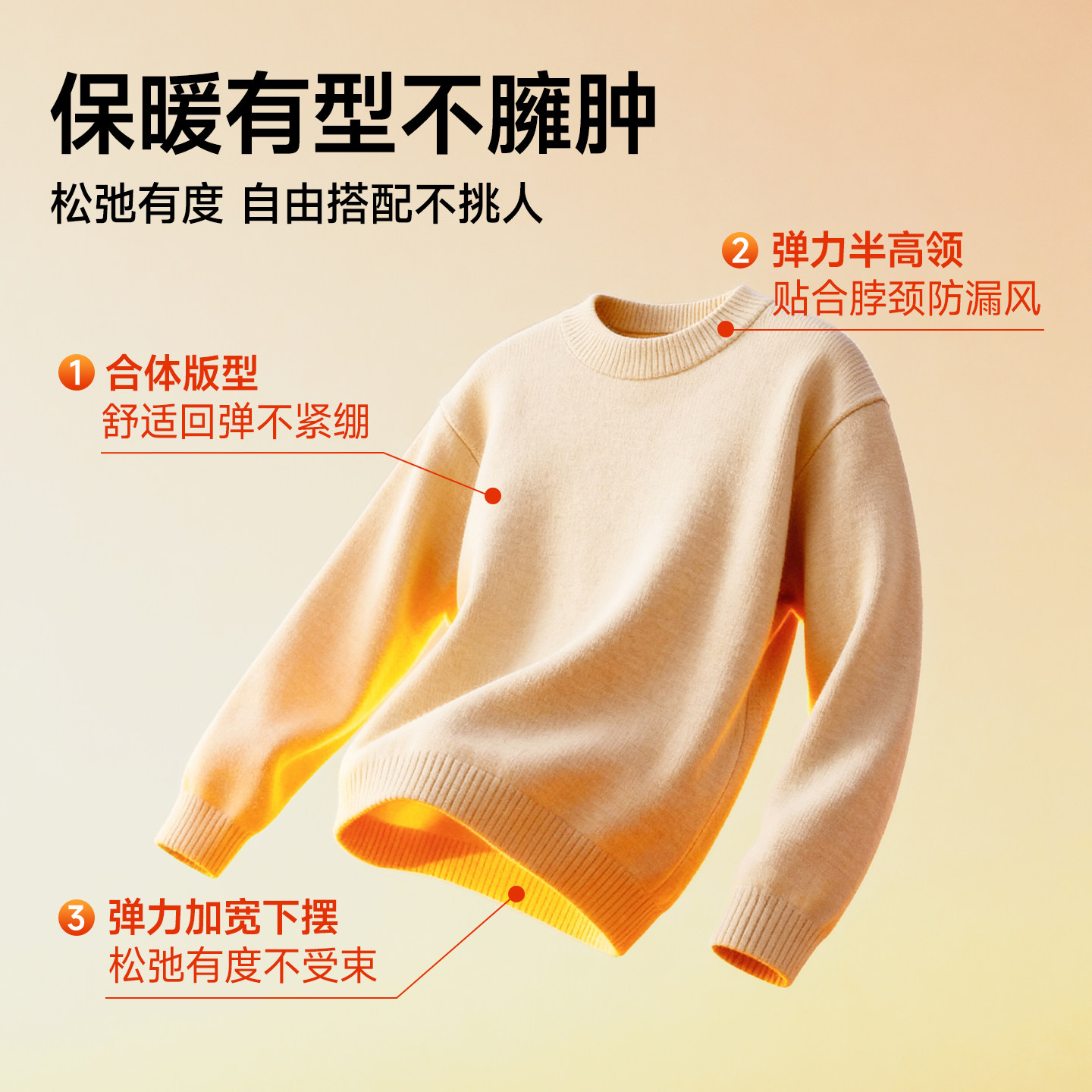 红蜻蜓男士圆领毛衣加绒加厚秋冬新款休闲保暖爸爸冬装针织打底衫