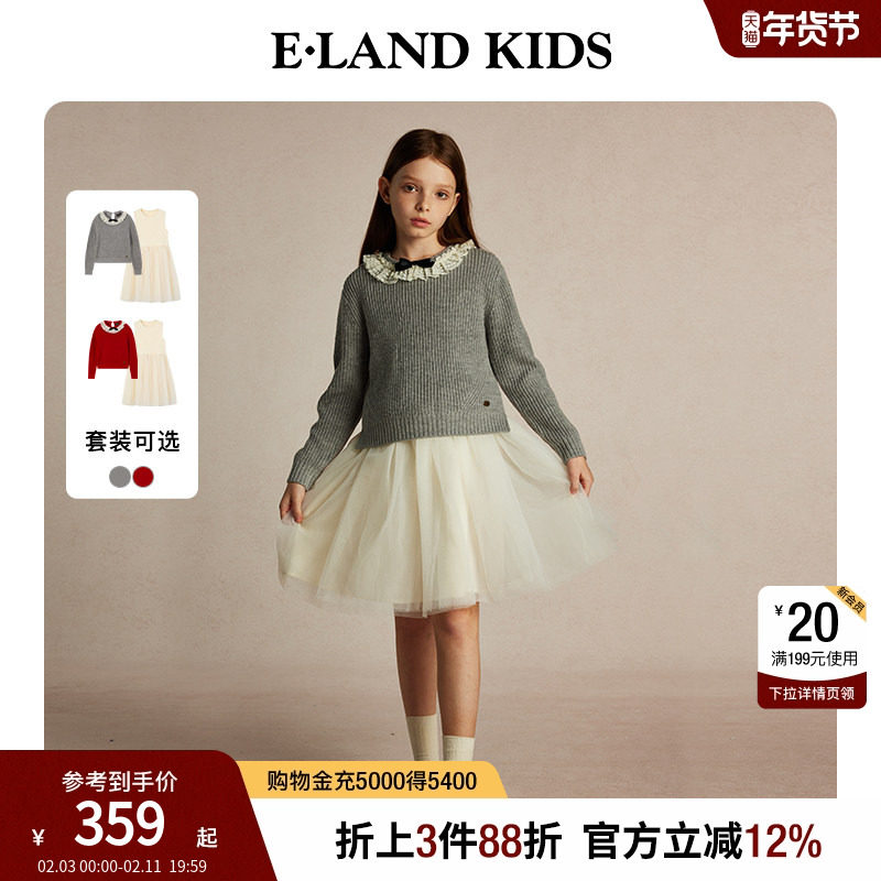 【一衣三穿】eland kids衣恋童装女童连衣裙冬季针织衫裙子套装