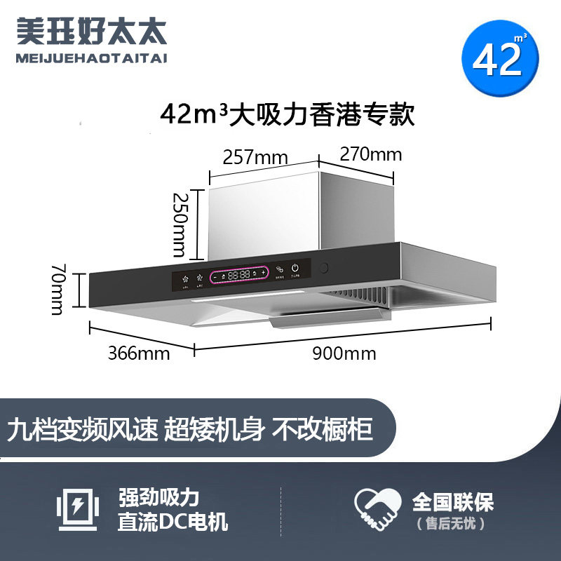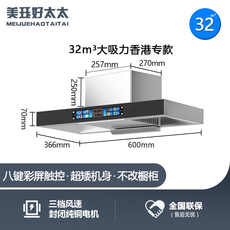 美珏好太太香港T型欧式顶吸式大吸力油烟机小型公寓家用厨房清洗