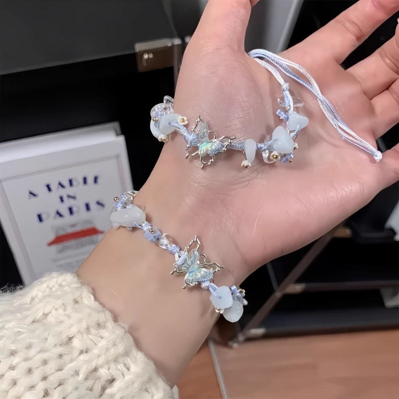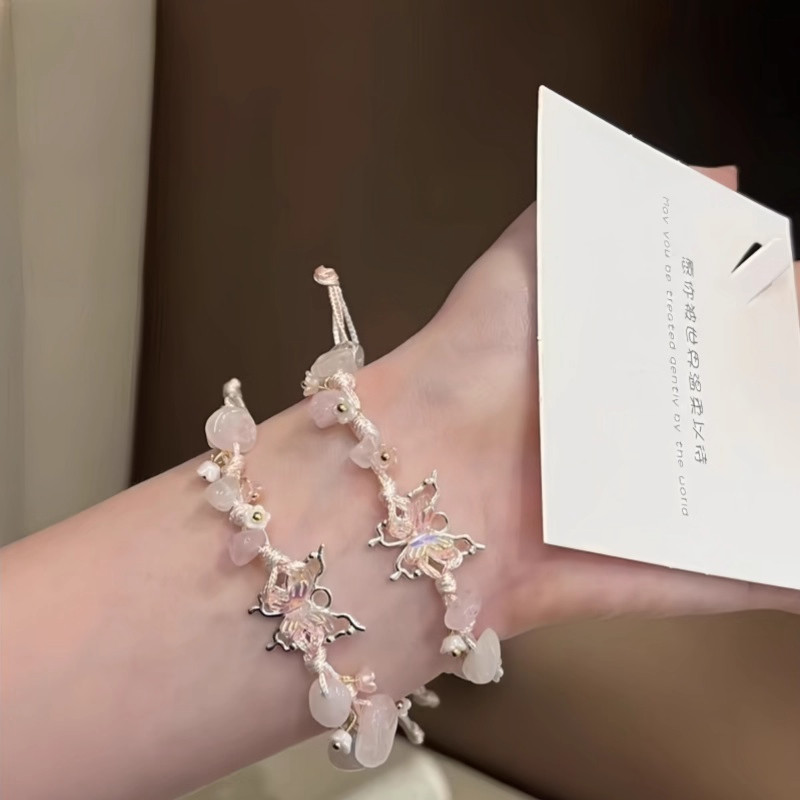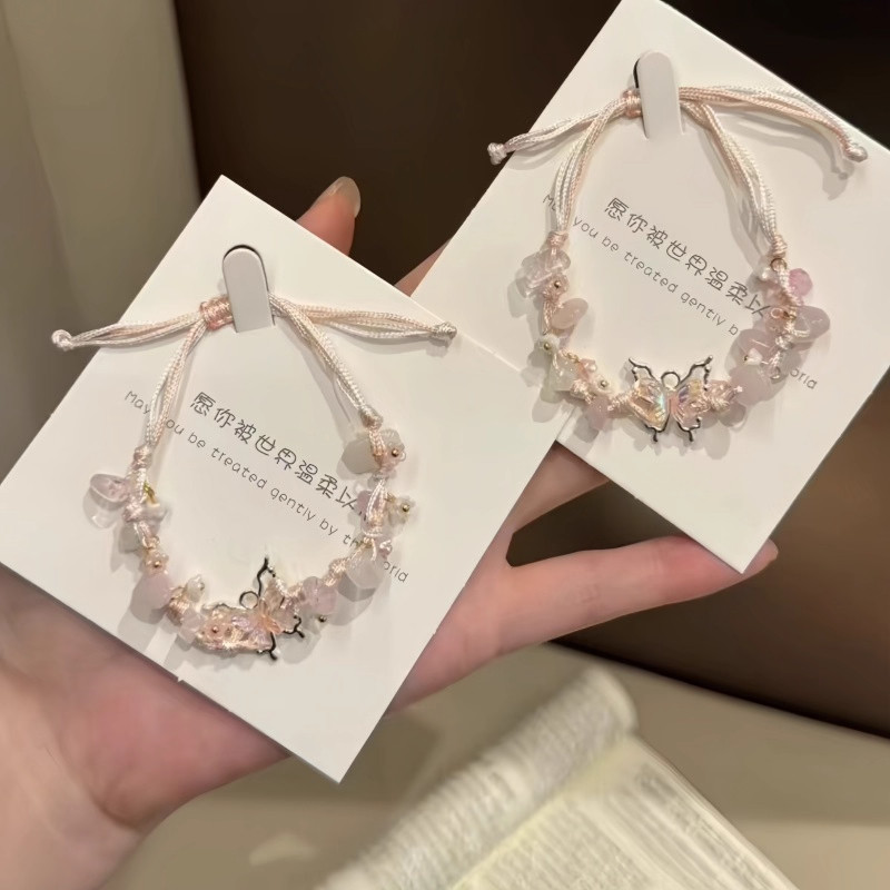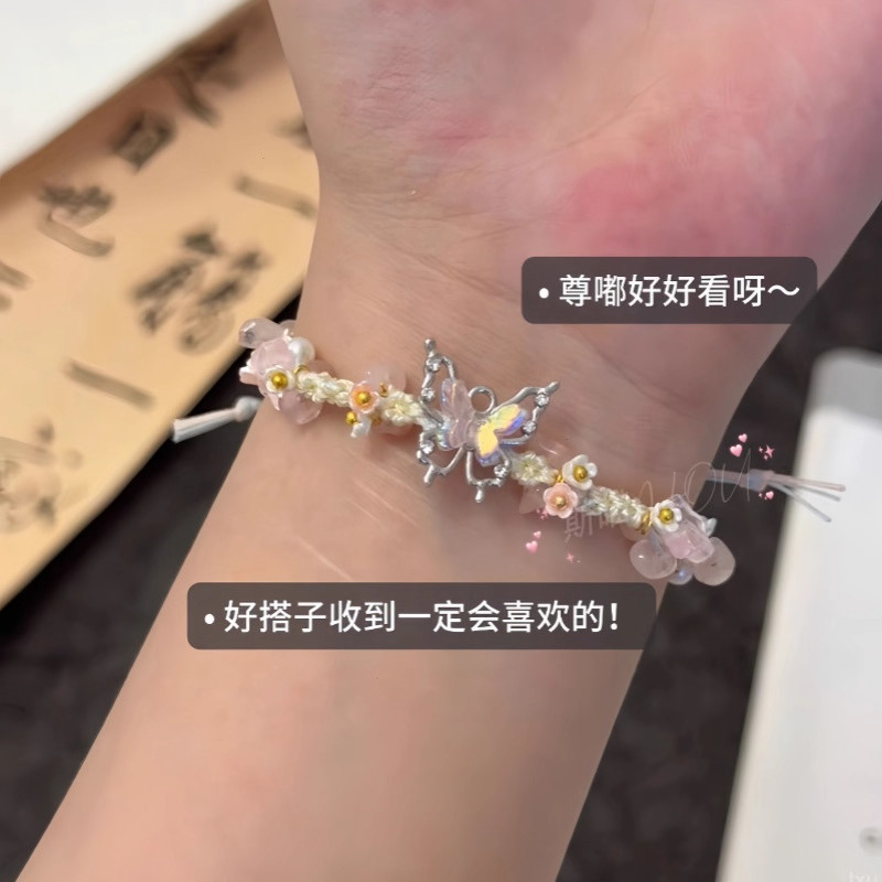 繁花蝴蝶闺蜜手链女小众高颜值编织情侣手绳甜美手串手饰ins礼物