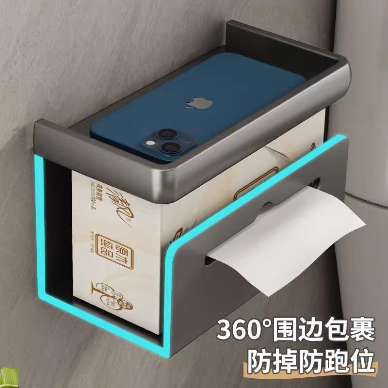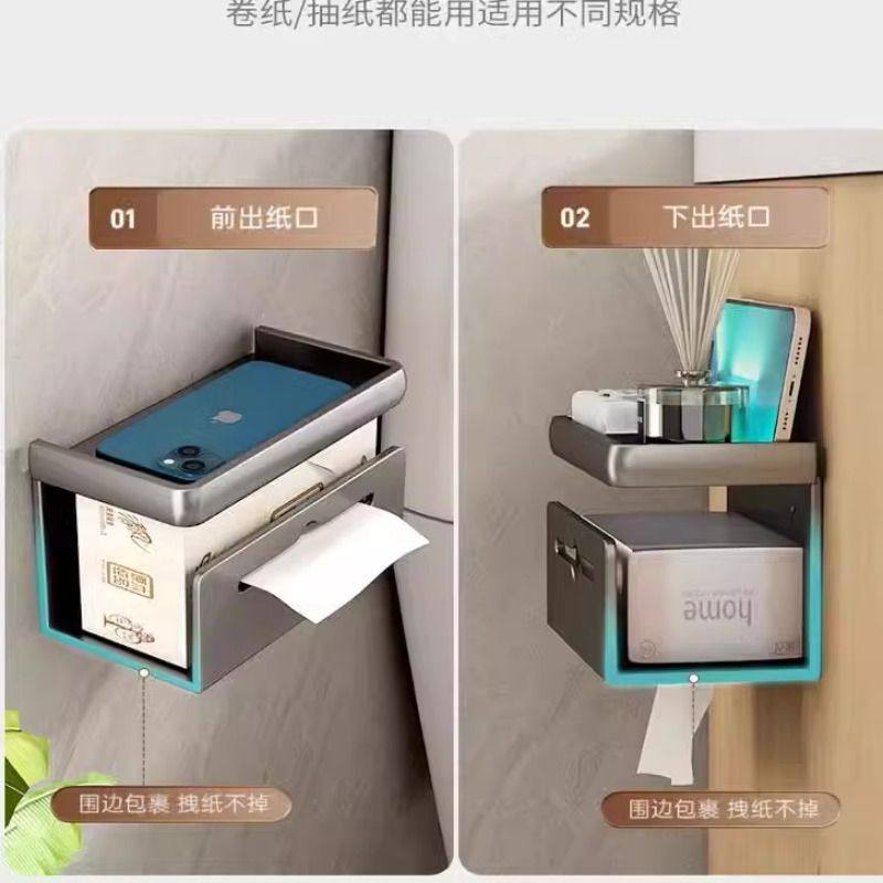 卫生间纸巾盒太空铝免打孔厕纸盒抽纸卷纸挂架厕所纸巾架子放置