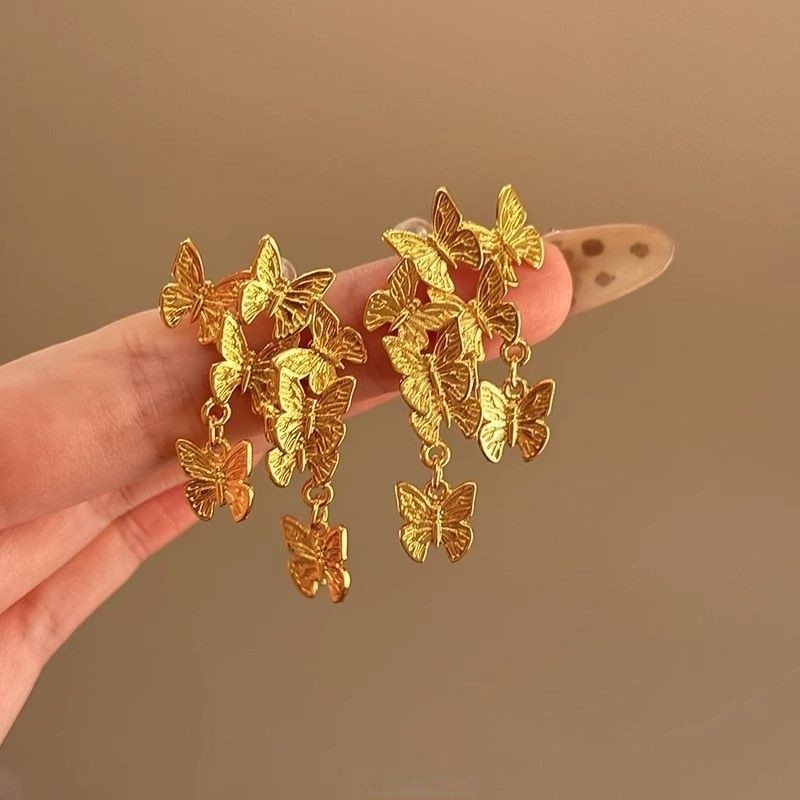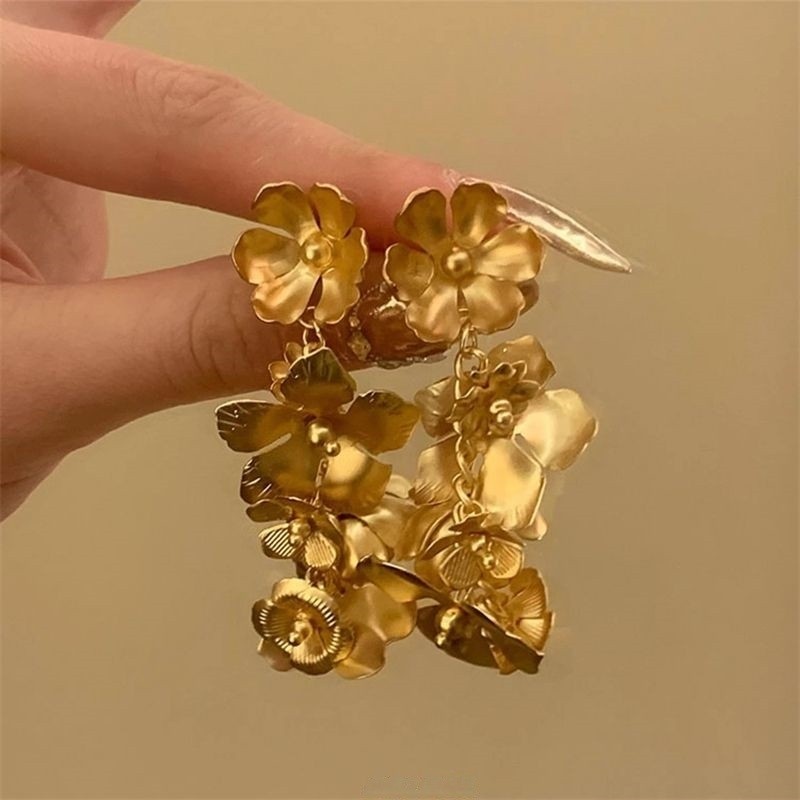 鎏金花朵耳环复古流苏芳花小众钟楚曦同款金色耳钉女耳夹无耳洞