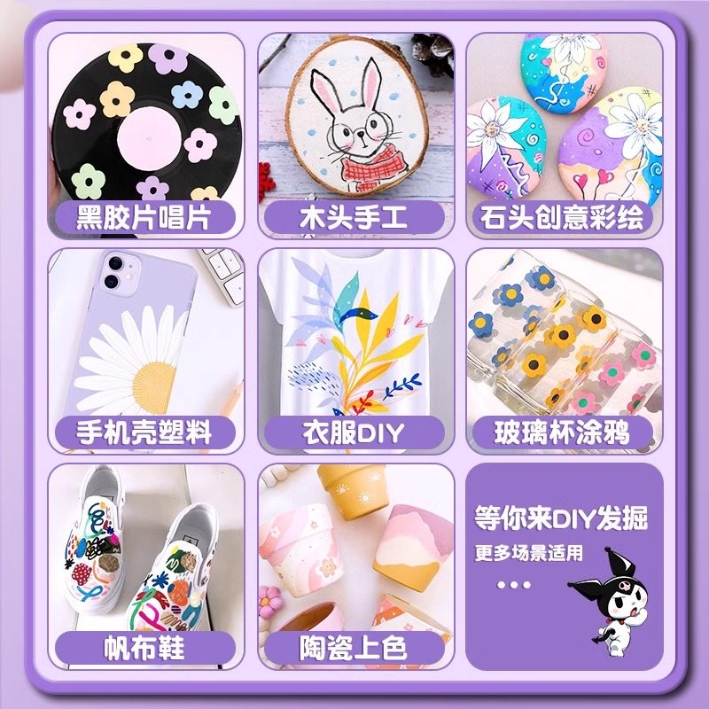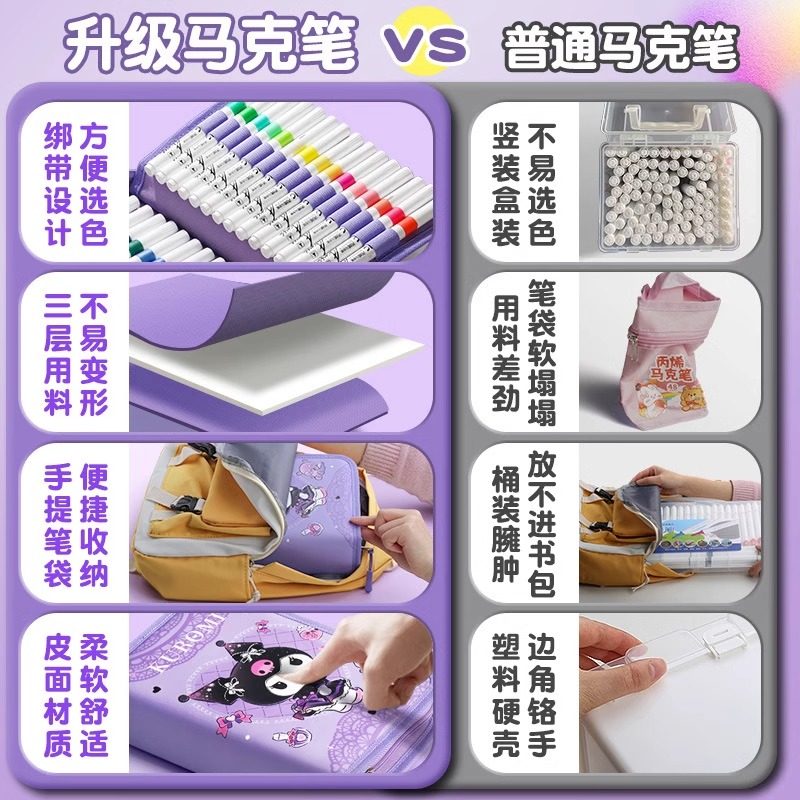 三丽鸥库洛米丙烯马克笔60色小学生美术专用水性不透色可叠色幼儿园儿童可水洗水彩笔diy画画炳稀比心彩色笔