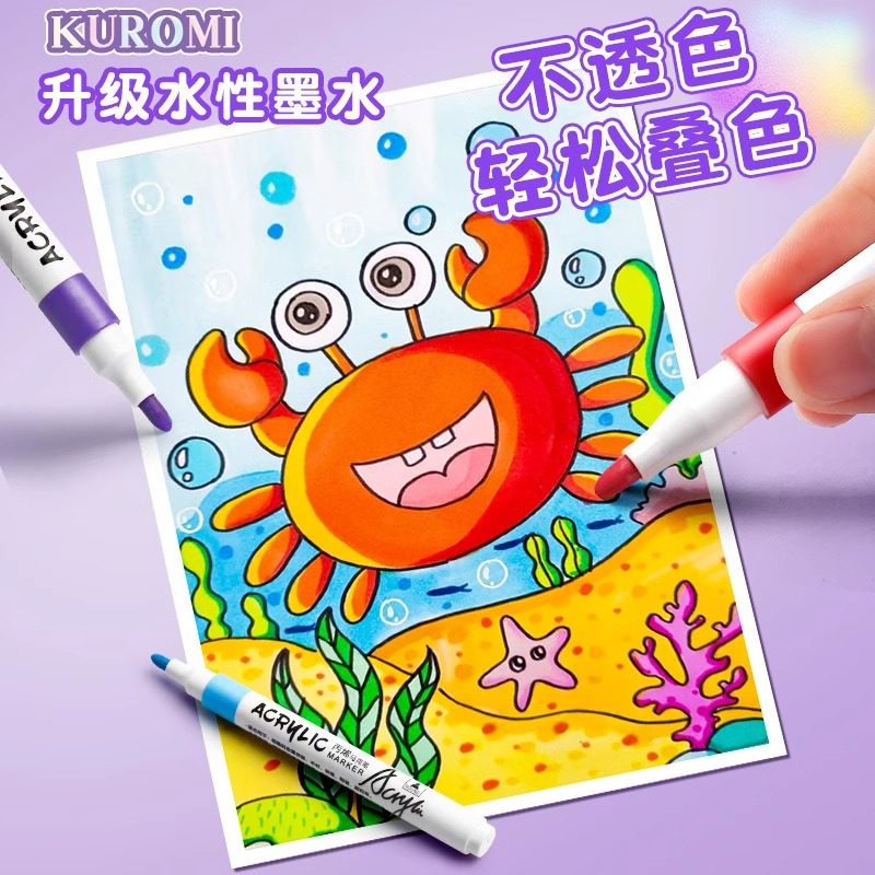 丙烯马克笔学生专用美术业不透纸可叠色儿童幼儿园小学无毒可水洗