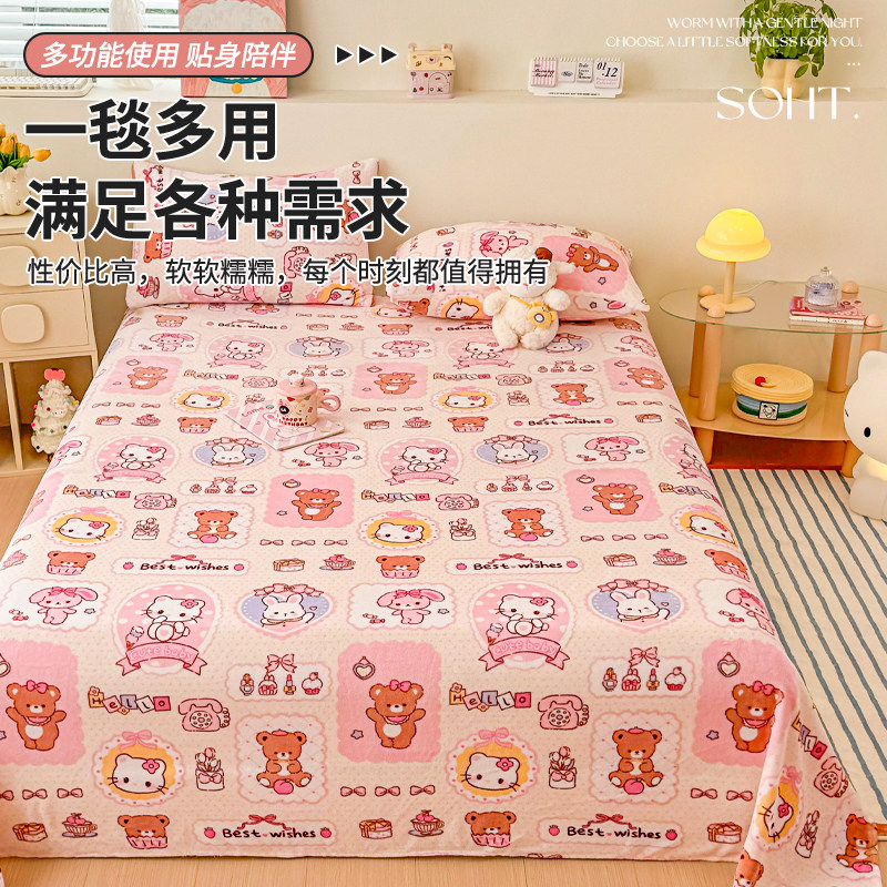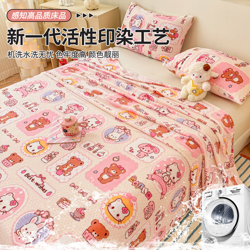 冬季加绒牛奶绒床单单件加厚珊瑚绒毛绒学生宿舍单人毛毯子三件套