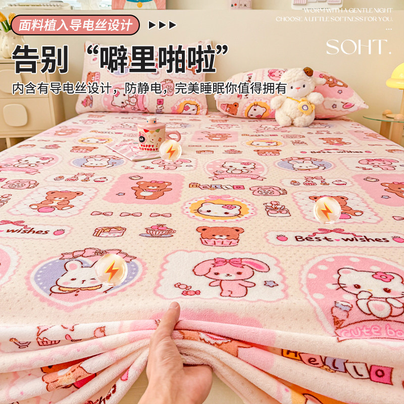 A类母婴高克重加厚抗菌牛奶绒床单 蓄热保暖