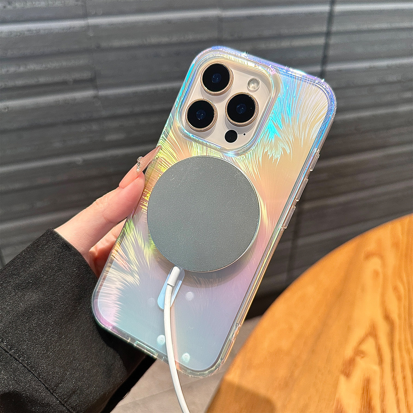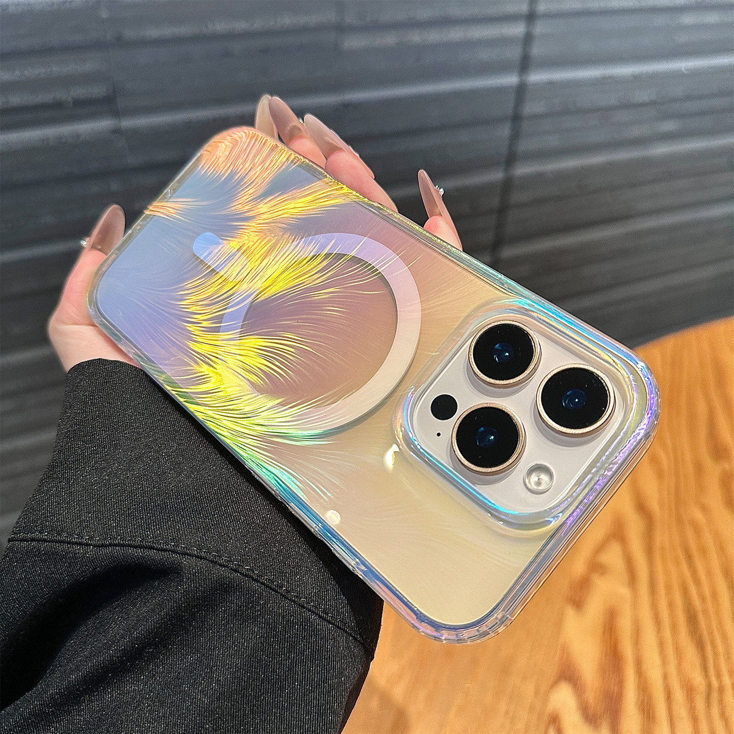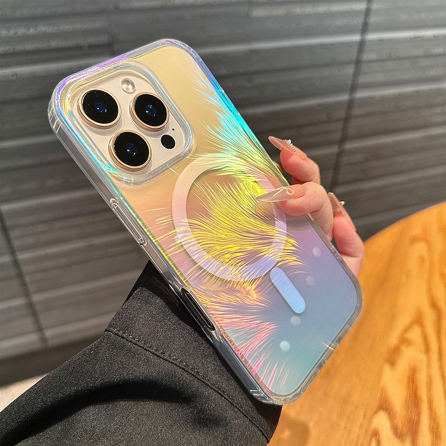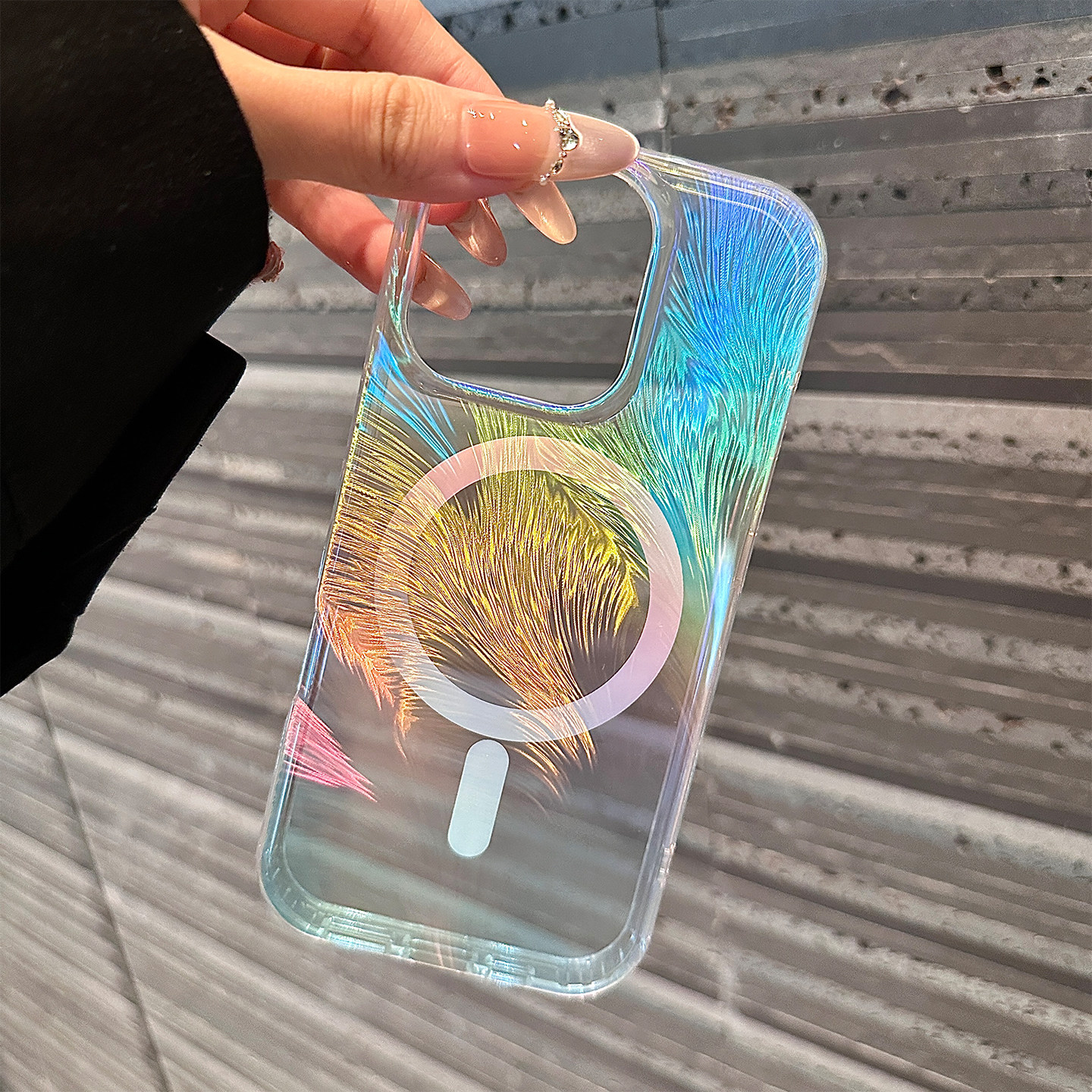 镭射渐变羽毛适用苹果17promax手机壳新款iphone15pro保护套小众13高级感男女14全包防摔16pro透明15磁吸充电