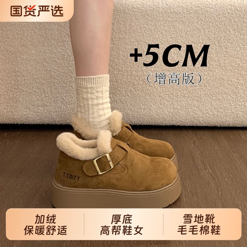 厚底加绒勃肯鞋高帮女鞋子2025冬季新款乐福鞋雪地靴毛毛棉鞋毛绒