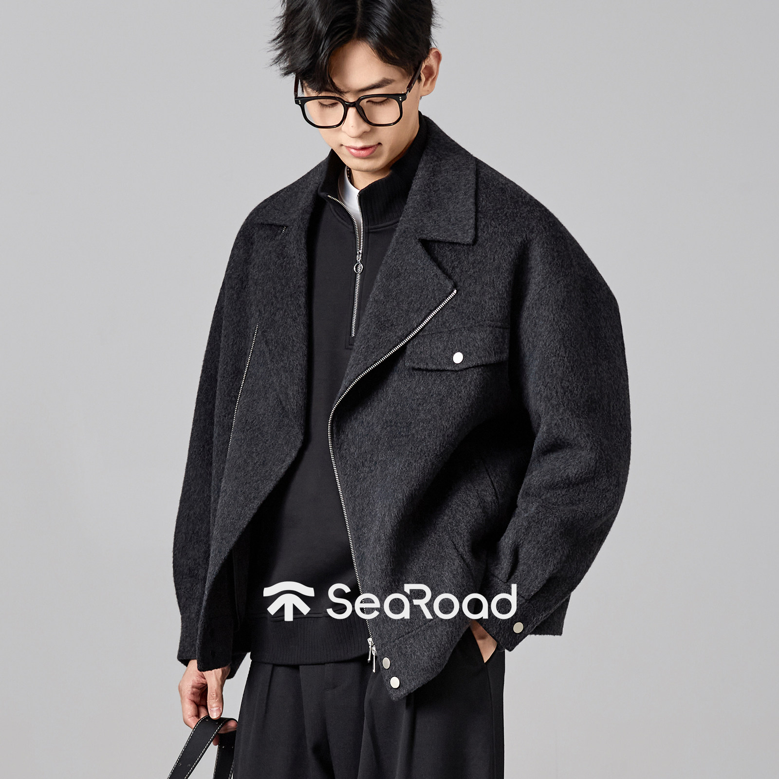 【直播专属】海上公路900g机车羊毛呢夹克男士25冬季长毛痞帅外套