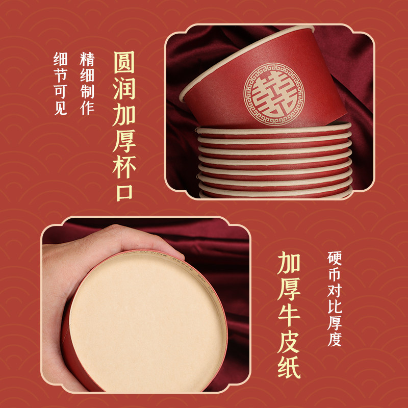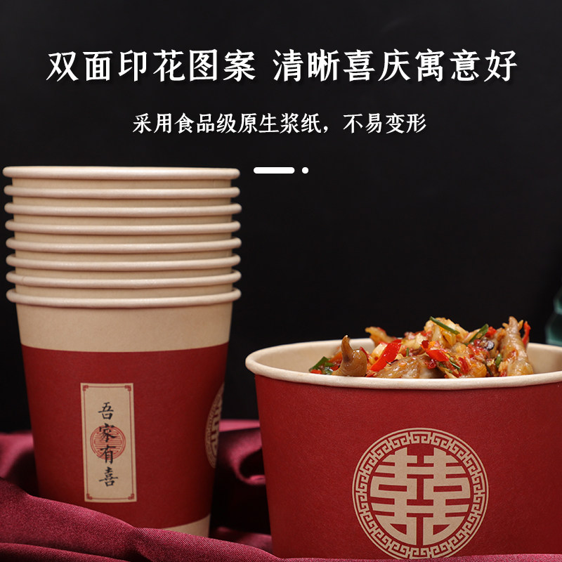 结婚纸碗一次性碗筷套装加厚喜碗酒席红色纸杯子婚庆用品食品级