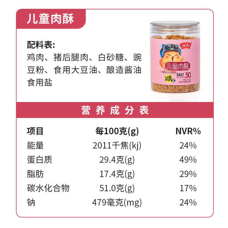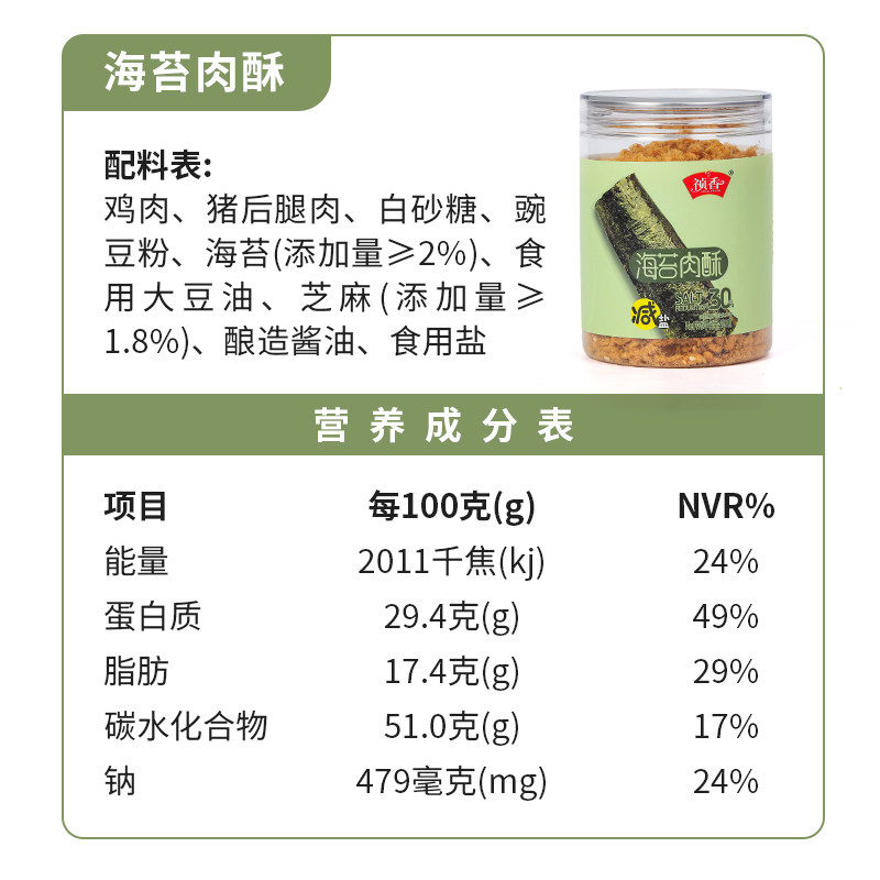 十一年老店祯香减盐肉酥儿童原味海苔肉酥100g*3罐寿司早餐拌饭