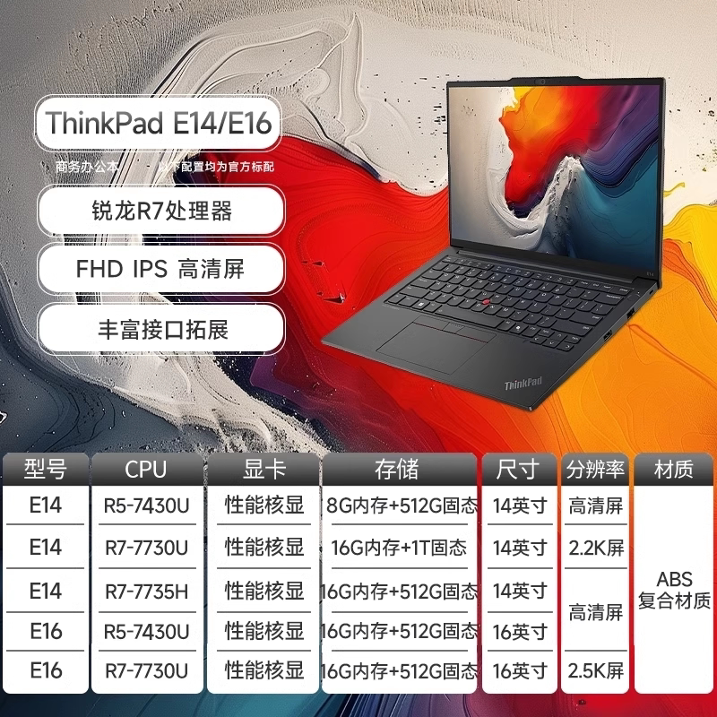 联想ThinkPad E14/E16 锐龙R5/R7 2024新款14英寸轻薄便携商务办公学生游戏本笔记本电脑官方旗舰