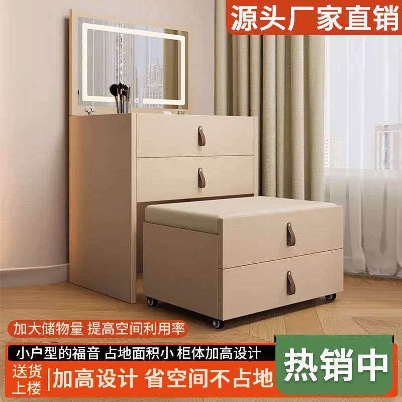 2025新款实木翻盖梳妆台一体化妆镜床头斗柜化妆桌迷你小型收纳柜