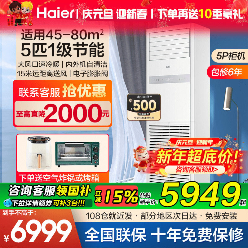 海尔空调4匹5匹商用中央空调家用客厅立式柜机一级能效变频省电