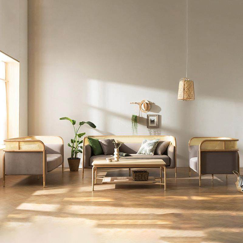 现代简约藤编沙发组合家用布艺小户型实木藤椅民宿三人休闲沙发椅