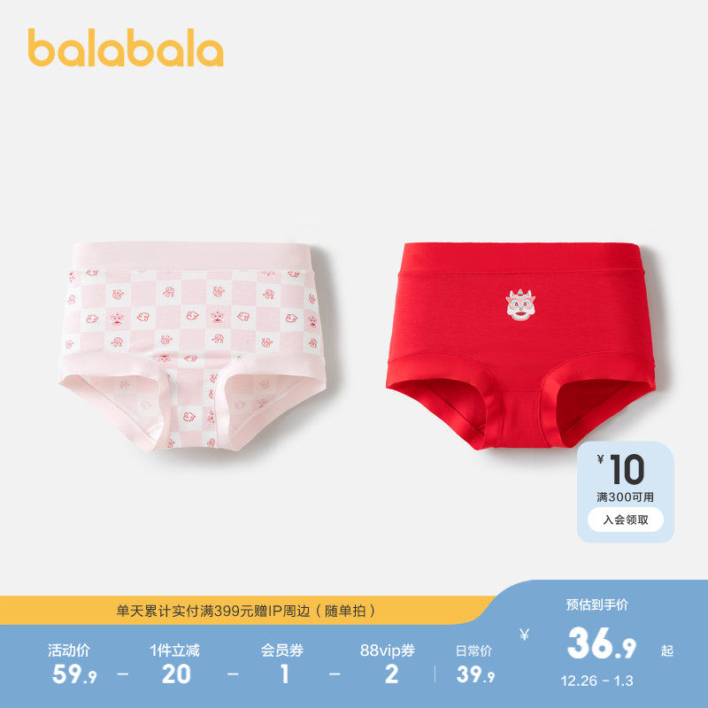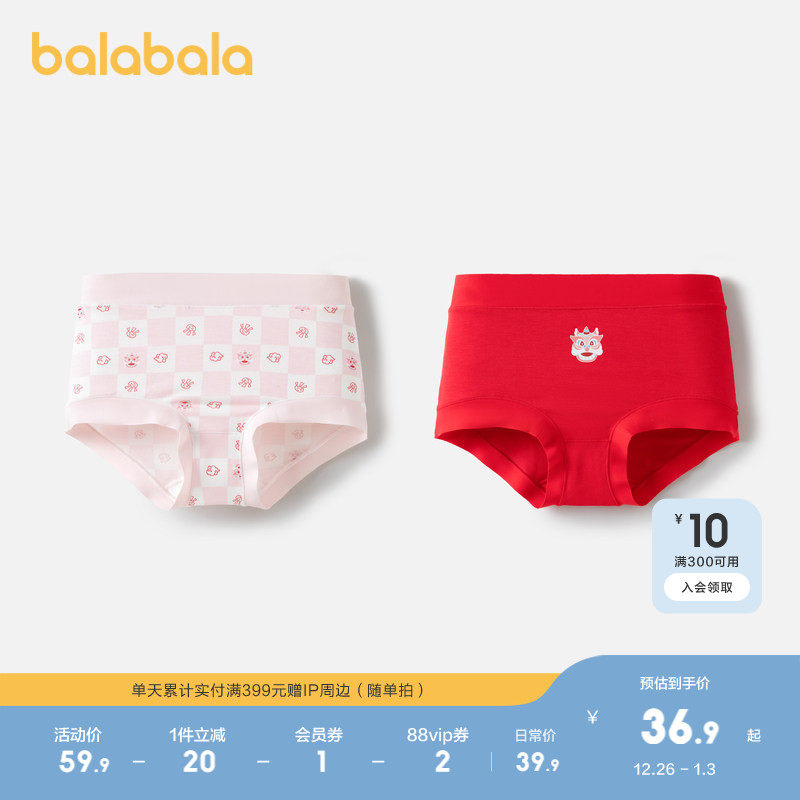 巴拉巴拉女童宝宝内裤2025新款莫代尔儿童三角短裤两条装舒适亲肤