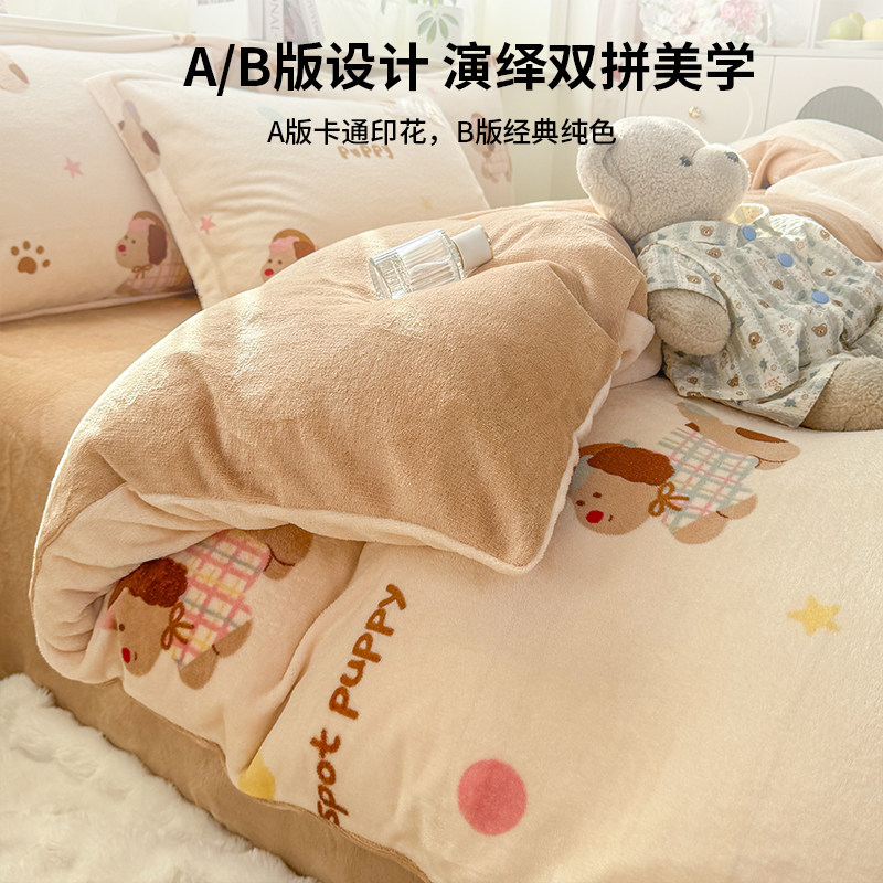 冬季加绒牛奶绒被套单件加厚珊瑚绒被罩毛绒1.5单双人秋冬法兰绒