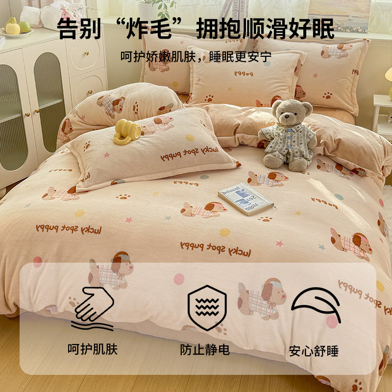 冬季加绒被套单件牛奶绒珊瑚绒宿舍单人单独毛绒被罩1.5米四件套3
